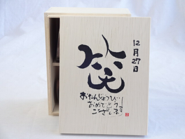 誕生日12月27日セット おたんじょうびおめでとうございます 笑う門には福来たる木箱珈琲マグカップセット(国産備前金彩マグカップと挽き立て特注ハッピーブレンド珈琲豆180g) 陶芸作家 安藤嘉規作×デザイン書道家 榮田 清峰作