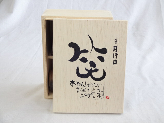 誕生日3月19日セット おたんじょうびおめでとうございます 笑う門には福来たる木箱珈琲マグカップセット(国産備前金彩マグカップとリフレッシュ紅茶茶葉2セット(リフレッシュブレンド20gアールグレイ40g)陶芸作家 安藤嘉規作×デザイン書道家 榮田 清峰作