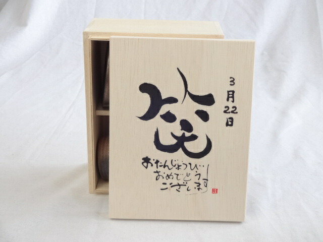 誕生日3月22日セット おたんじょうびおめでとうございます 笑う門には福来たる木箱珈琲マグカップセット(国産備前金彩マグカップとリフレッシュ紅茶茶葉2セット(リフレッシュブレンド20gアールグレイ40g)陶芸作家 安藤嘉規作×デザイン書道家 榮田 清峰作