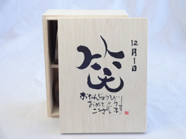 誕生日12月1日セット おたんじょうびおめでとうございます 笑う門には福来たる木箱珈琲マグカップセット(国産備前金彩マグカップとリフレッシュ紅茶茶葉2セット(リフレッシュブレンド20gアールグレイ40g)陶芸作家 安藤嘉規作×デザイン書道家 榮田 清峰作