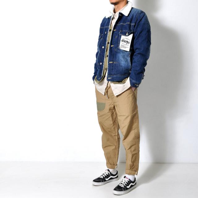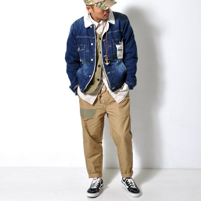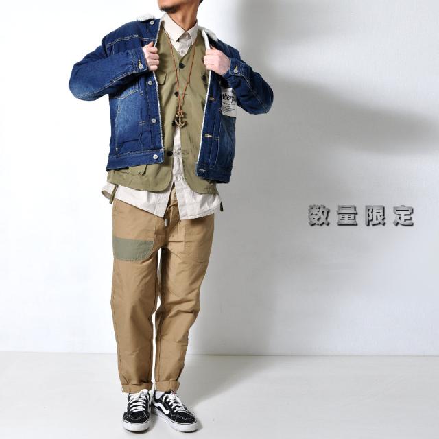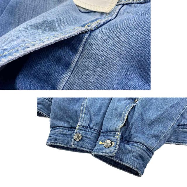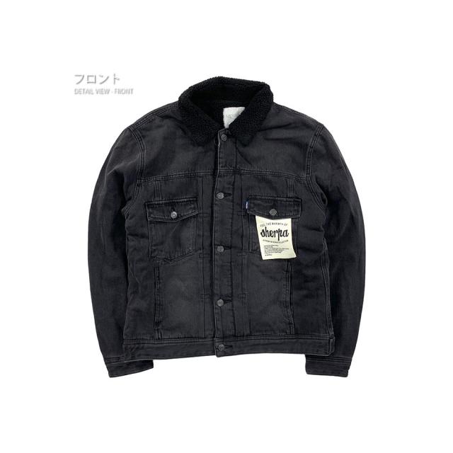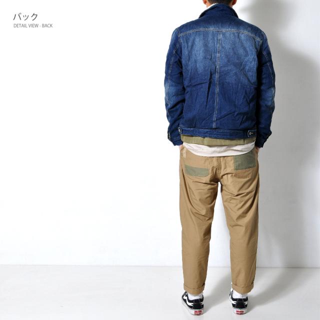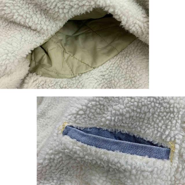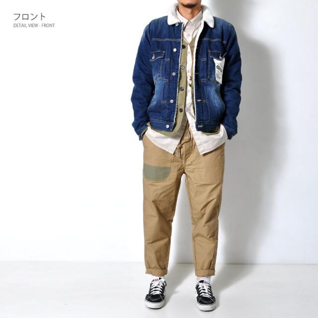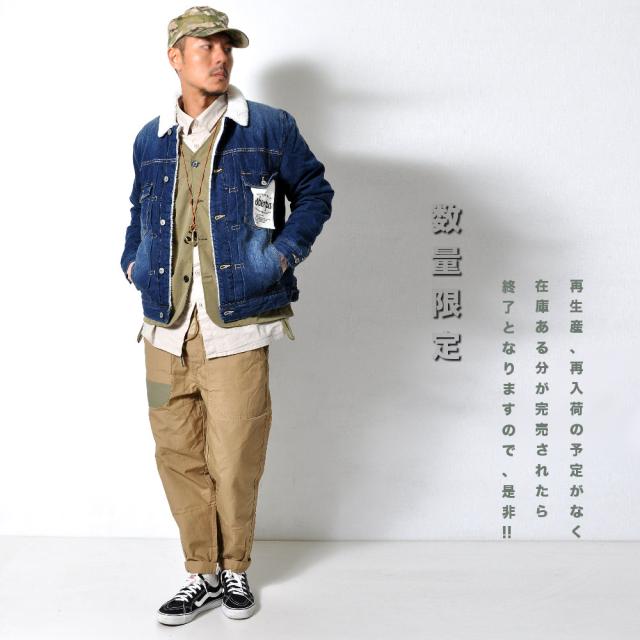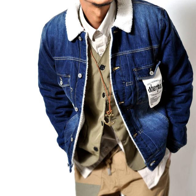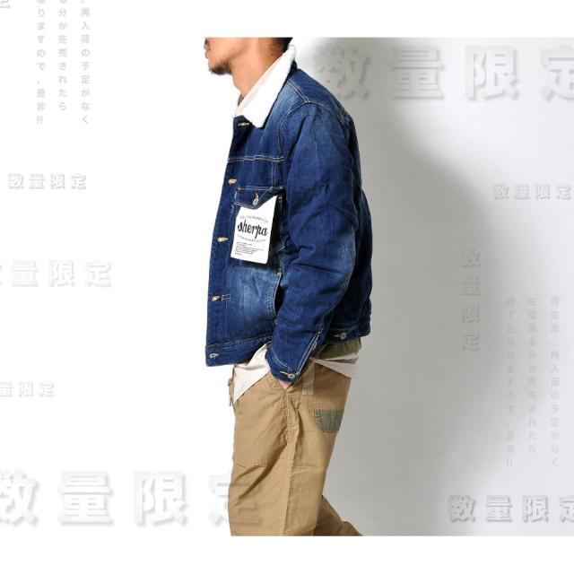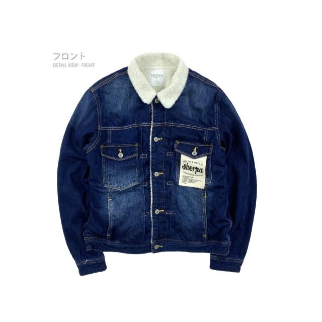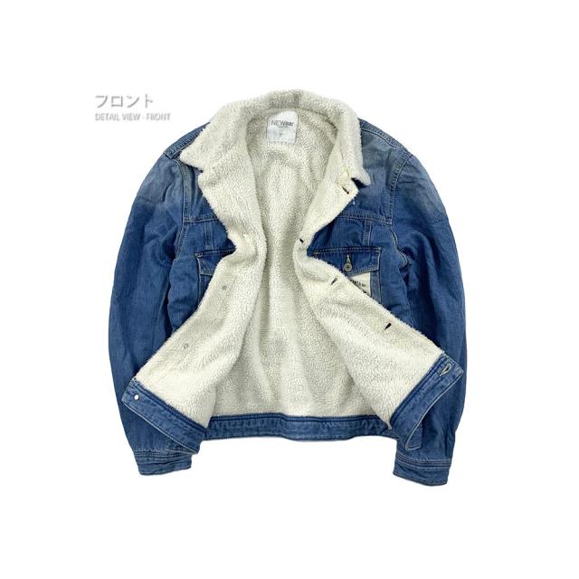 裏地のボアが暖かい♪デニムジャケット定番のデザインながらも、低めに配置した胸ポケットとロゴのはいったタグで