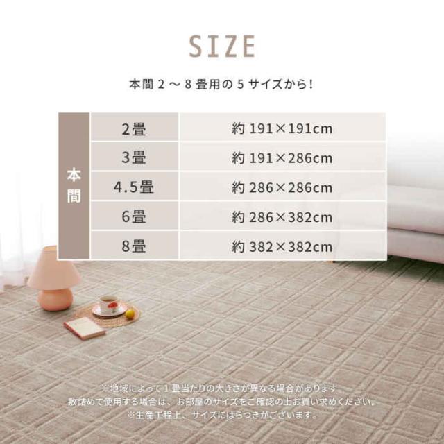 ■商品名:カーペット 本間4.5畳 286×286cm ポリエステル100% 平織 ループパイル 裏面不織布 抗菌・防臭加工 フリーカット 敷詰 中敷 ホットカーペット・床暖房対応 日本製 シオン