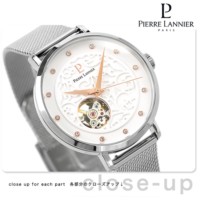 ピエールラニエ エオリアオートマウォッチ 自動巻き 腕時計 レディース オープンハート Pierre Lannier P311D601 アナログ ホワイト 白