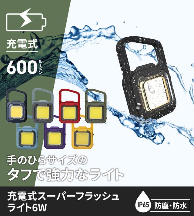 【40%引き】【メール便】 ムサシ 充電式スーパーフラッシュライト 6W USB充電 コンパクト 携帯 小型ライト アウトドア キャンプ COBライト ランタン 作業灯 現場 防犯 防災 スポットライト 照明 カラビナフック付き マグネット