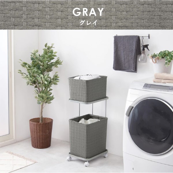 色柄物や汚れた洗濯物を分けて溜められるランドリーワゴン。