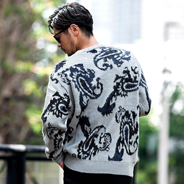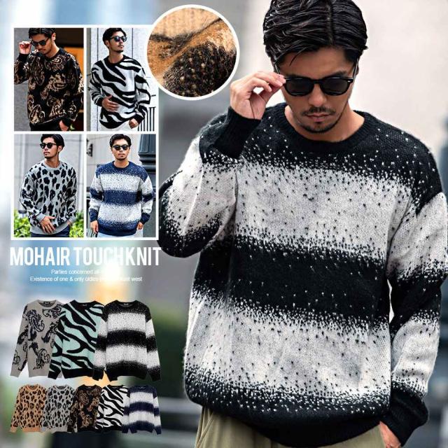 ニット メンズ セーター 厚手 オーバーサイズ ブランド オシャレ 大きいサイズ ニット モヘア モヘヤ ジャガード モコモコ 暖かい シンプル 無地 アウター 防寒 もこもこ ヒョウ柄 豹柄 レオパード ボーダー柄 ペイズリー カジュアル ファッション おしゃれ 春 夏 秋 冬 ストリート ストリート系 ストリートファッション 韓国 韓国系 韓国ファッション 下北沢 下北系 古着 古着系 90s 90年代 2000年代 Y2K ベージュ ブラック 黒 秋 冬 CavariA キャバリア 男性 男 父の日 父の日ギフト 父の日プレゼント 20代 30代 40代 メンズファッション 東京 プレゼント 誕生日 記念日 贈り物 ギフト配送について