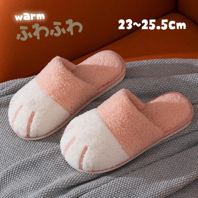 スリッパ ルームシューズ もこもこ 暖かい ふわふわ 室内 冬 レディース ファーサンダル ボア 猫柄 猫足 ネコ モコモコ 洗える 防寒 冷え対策 来客用 オフィス