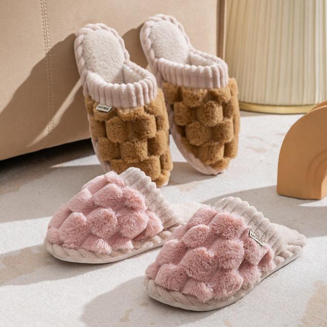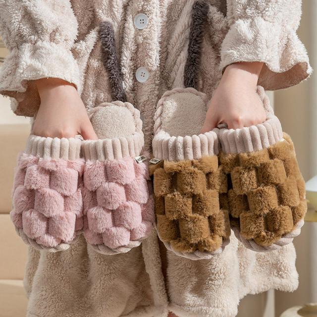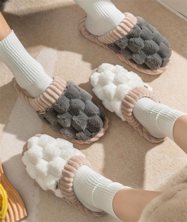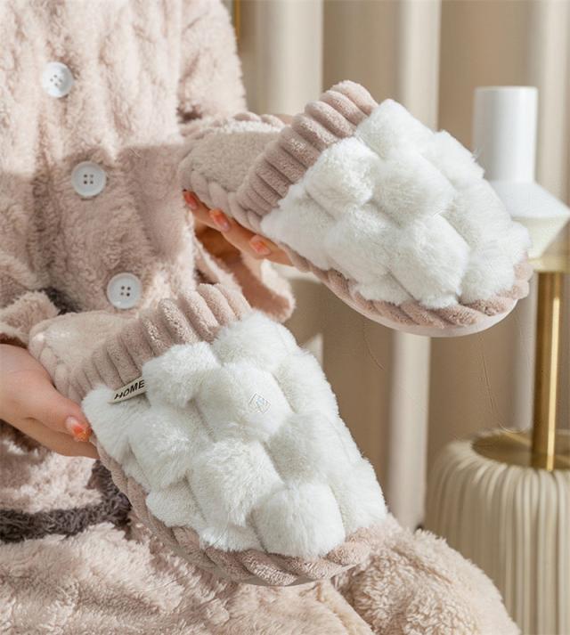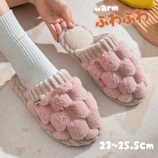 スリッパ ルームシューズ ルームスリッパ レディース パフ柄 もこもこ もふもふ 室内履き 冬用 おしゃれ 蒸れない ふわふわ フ