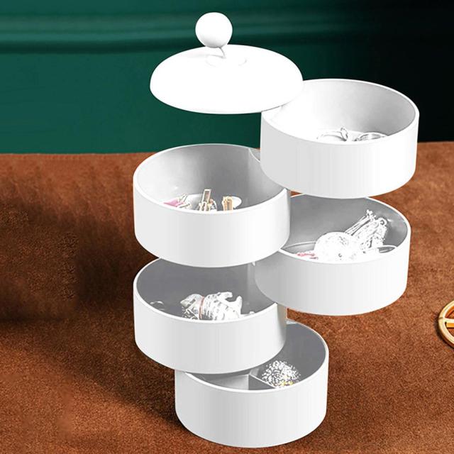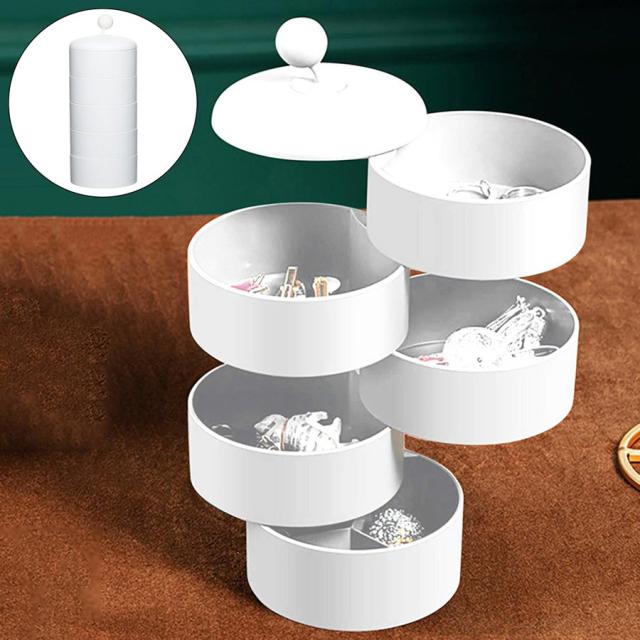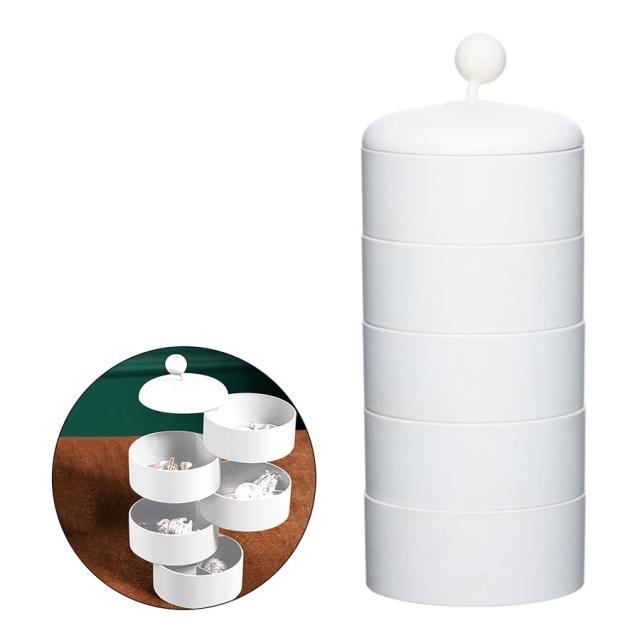 5層360回転 ジュエリーボックスケースタワー.蓋付きイヤリングホルダーホワイト