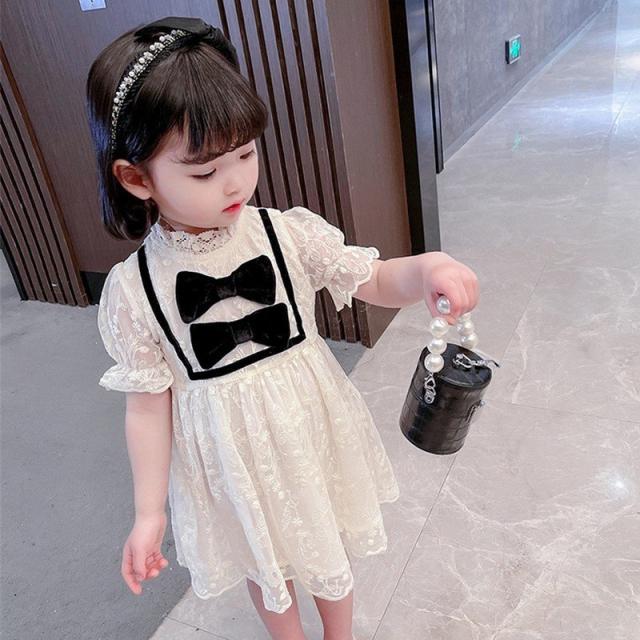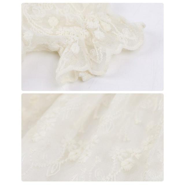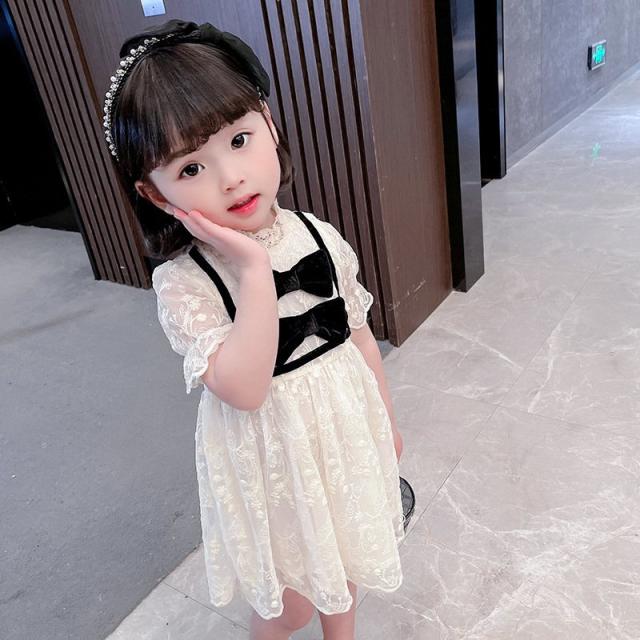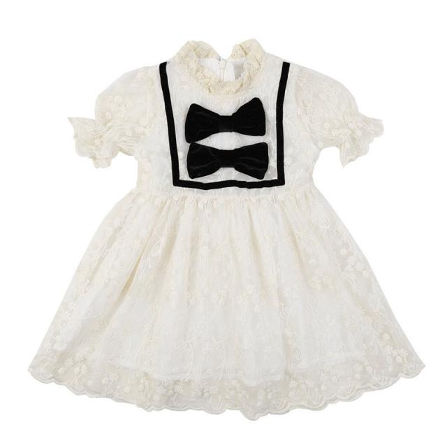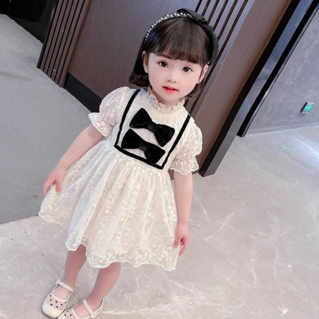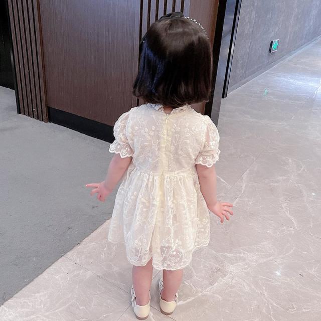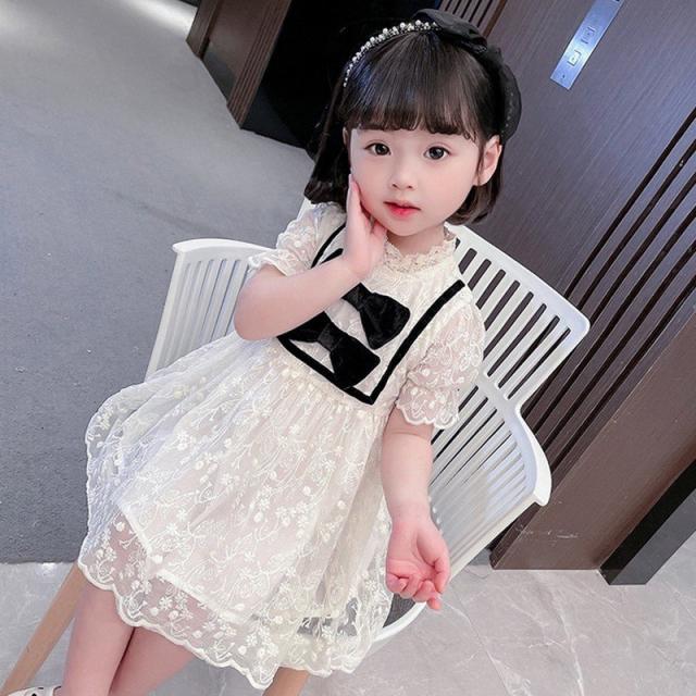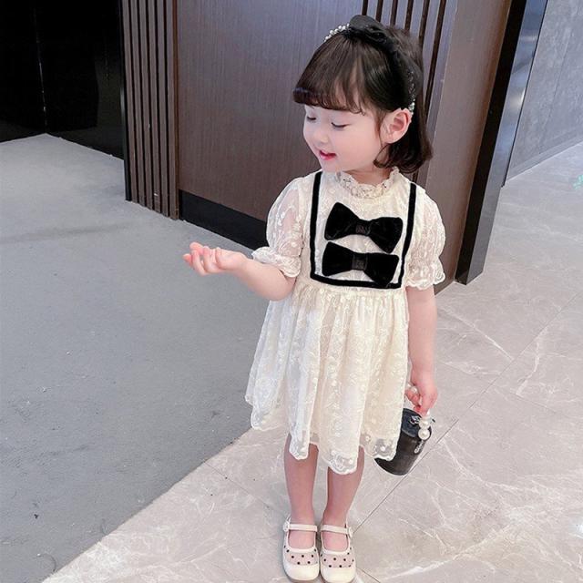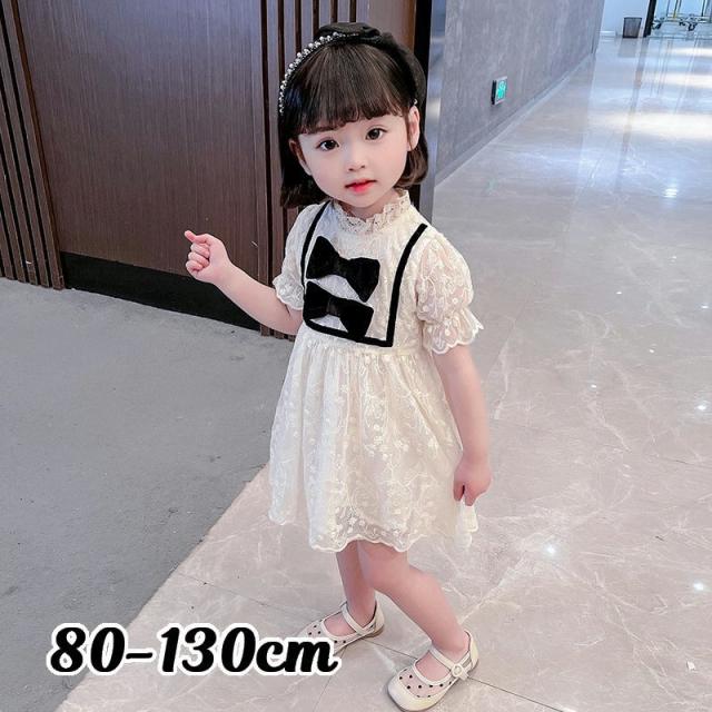 ワンピース 子供服 キッズ ベビー 女の子 ガールズ カジュアルドレス フリル襟 半袖 キャンディースリーブ リボン 総レース ミニ丈 ギャザー かわ