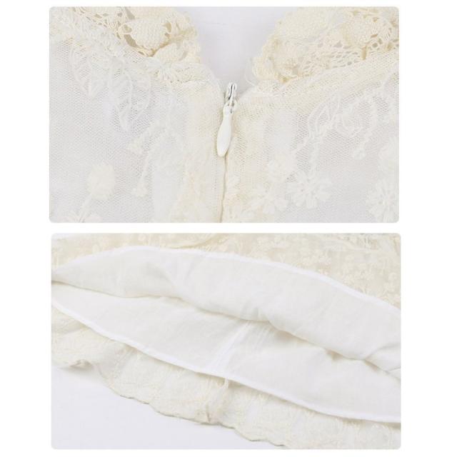 | サイズについての説明 | 総レースがかわいいキッズベビー用ワンピースです。 胸元のリボンがワンポイント♪ お出かけ用、パーティー・結婚式などのお祝い事用にも重宝しそうなアイテムですね☆ |