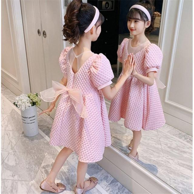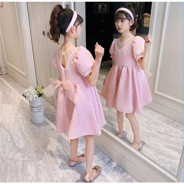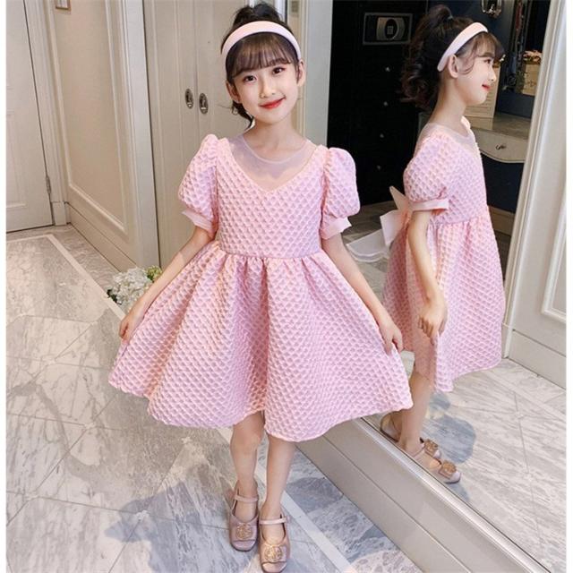 子供服 ワンピース ピンク 160 韓国子ども服 キッズ 女の子 夏服 半袖ワンピース 蝶結び 子供ドレス 結婚式 ベビー服 お姫様 おしゃれ 可愛い カジュアル 新品