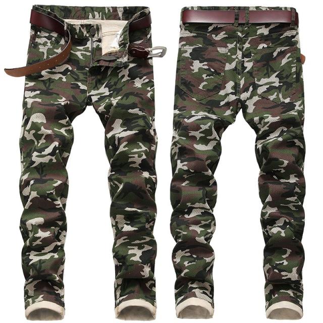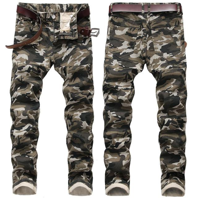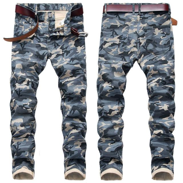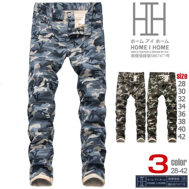 デニム ジーンズ メンズ ストレッチ 迷彩柄 ミリタリー系 アメカジ 個性 カモフラ 大きいサイズ