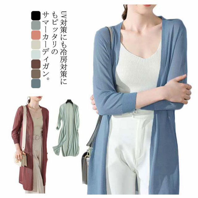 サマーカーディガン ロングカーディガン レディース 春 夏 サマーニット長袖 ロング丈 透け感 Vネック トップス UVカット 冷房対策 羽織り ライトアウター おしゃれ 薄手