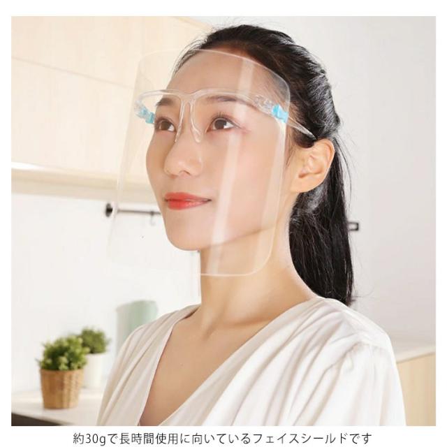 | メガネ型フェイスド クリア&超軽量 飛沫?細菌等から顔を保護 約30gで長時間使用に向いているフェイスドです メガネの上でも使用可能! 全てのパーツは水洗いOK♪衛生的にお使いいただけます。 メガネとドを組み立てるタイプなのでかさばりません!また、フィルム交換で長くお使いいただけます 優れた耐久性と抜群のフィット感を兼ね備えている素材を採用して長くお使いいただけます。 | |