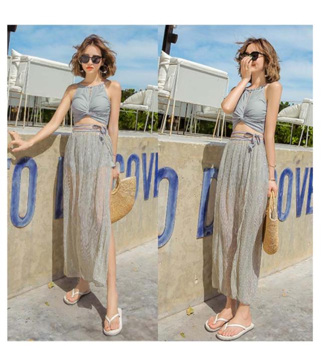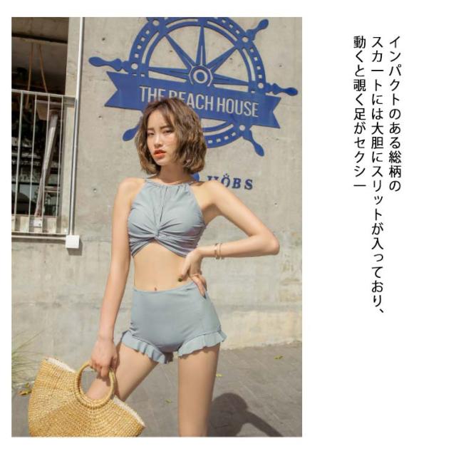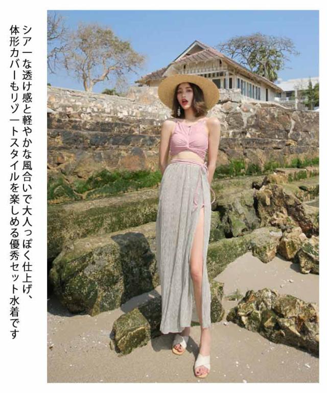 水着 レディース 女子 体型カバー ワンピース水着 スカート ハイウエスト バンドゥ ビキニ タンキニ ロングスカート セパレート パレオ 3点セット 無地 オトナ女子 リゾート プール 海
