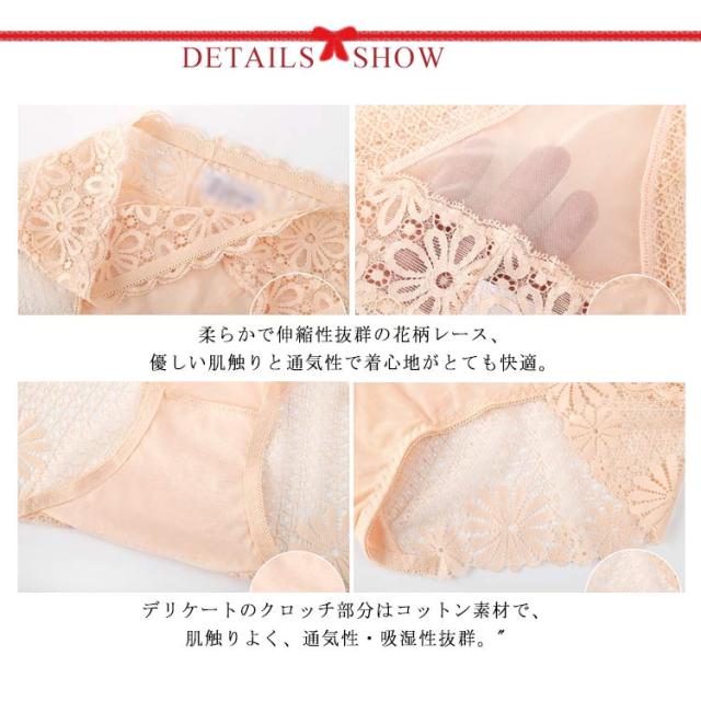 送料無料 総レースショーツ クロッチ綿 フラワーレース 花柄 スタンダードショーツ セクシー 透け感 ひびきにくい インナー 下着 伸縮性 婦人用