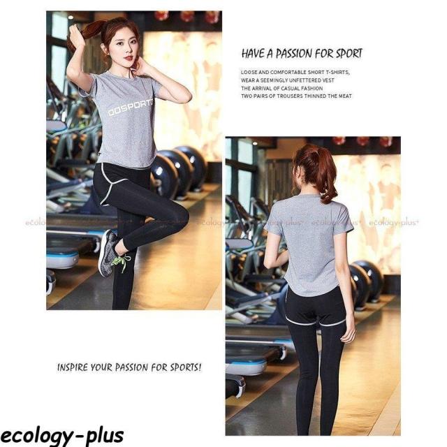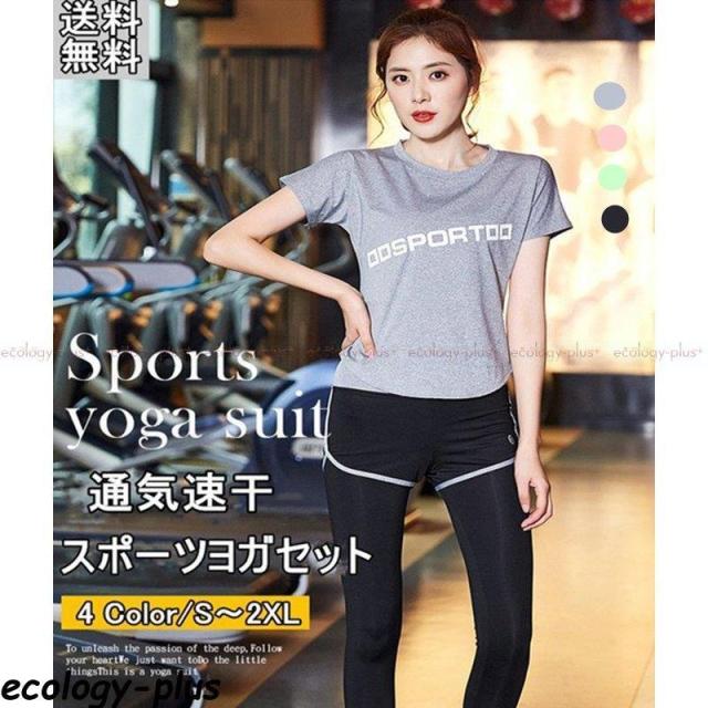 ランニングウェア 2点セットレディース Tシャツ セットアップ ヨガ ジョギングジャージ 瑜伽運動服 スポーツウェア タイツ 吸汗