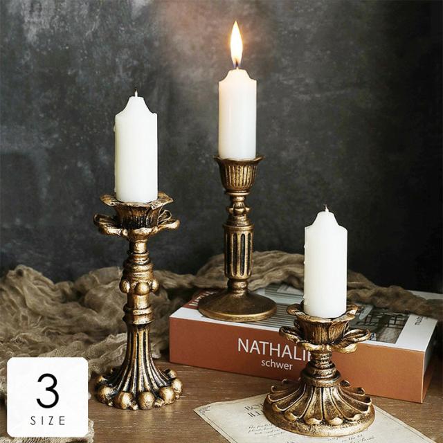 インテリア小物 置物 キャンドルホルダー キャンドルスタンド ロウソク立て 燭台 アンティーク ゴールド 重厚感 くつろぎ空間 ホテルライク リビング