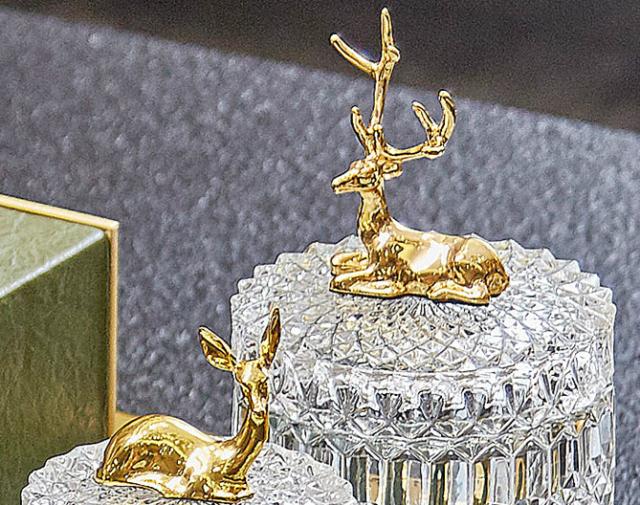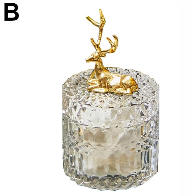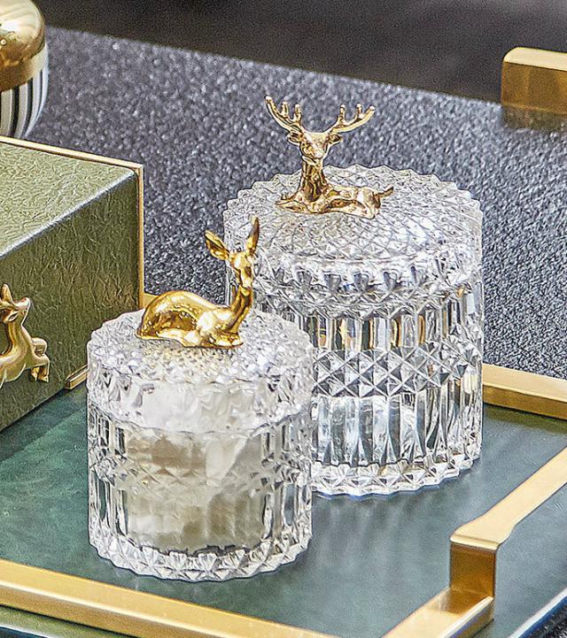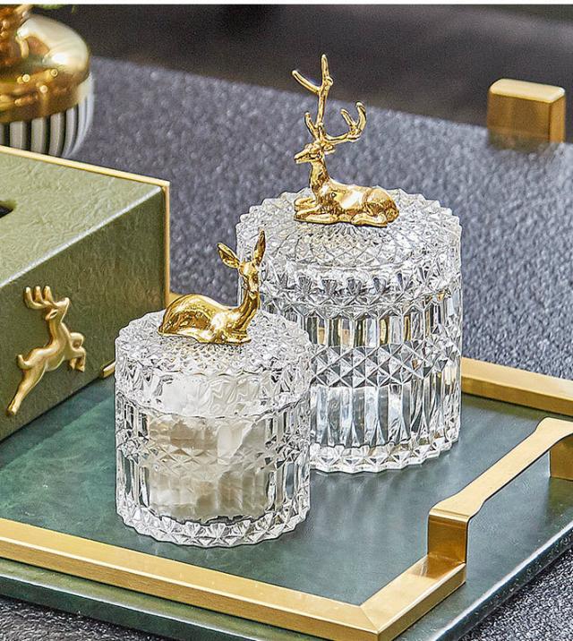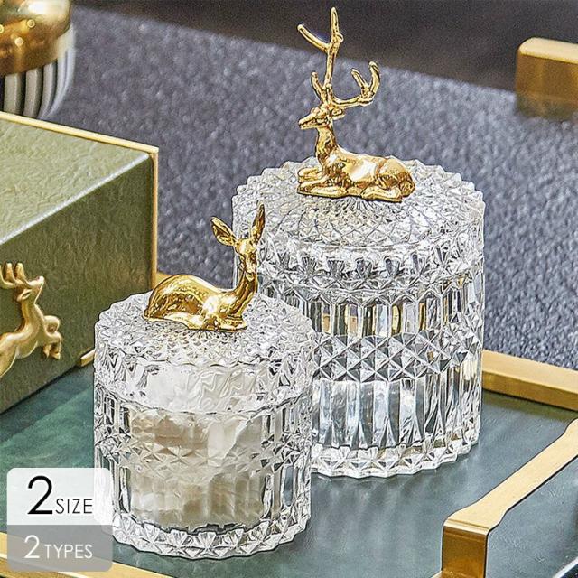 インテリア小物 置物 収納 小物収納 見せる収納 小物入れ お菓子入れ 調味料入れ クリスタル 動物 鹿 つまようじ入れ 綿棒入れ クリア ゴールド 上品