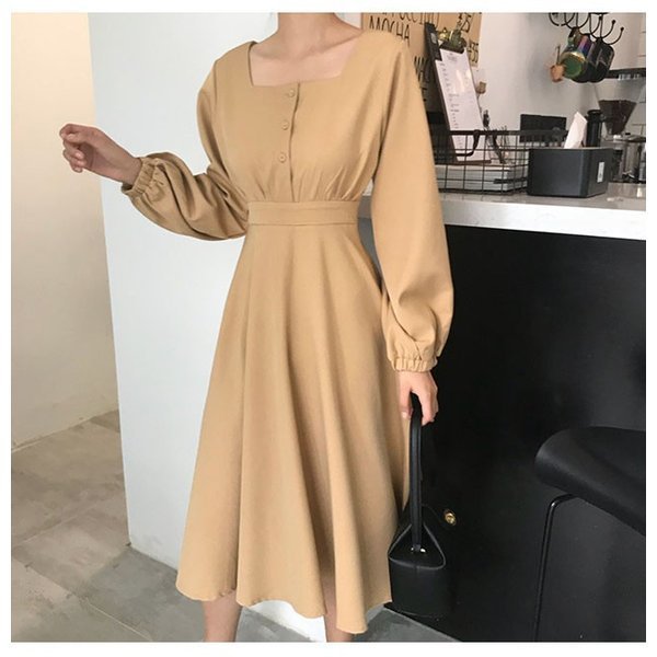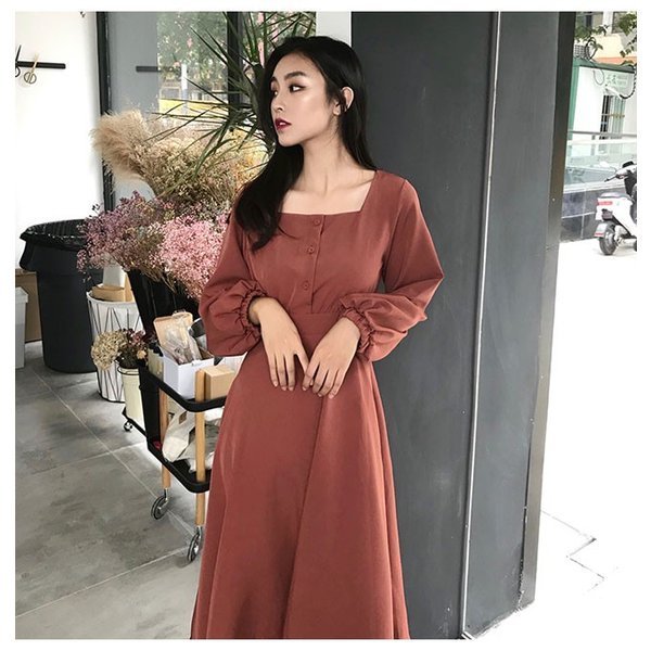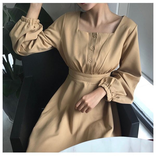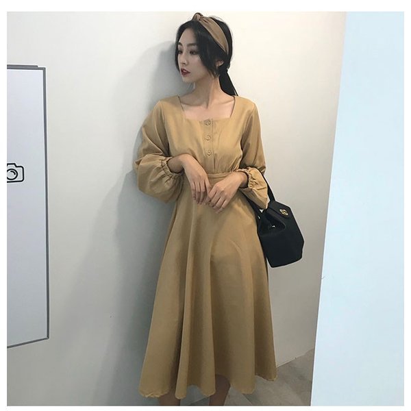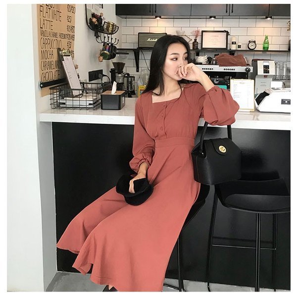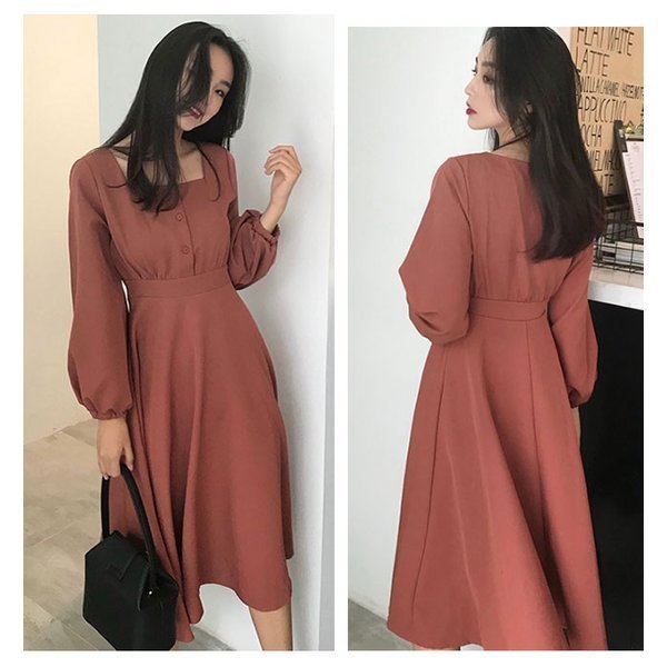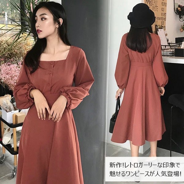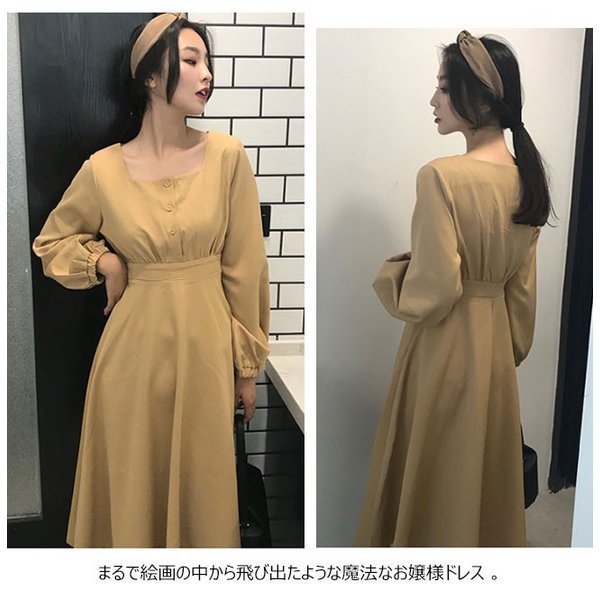 お嬢様ドレス ワンピース ロング マキシ レディース スクエアネック ドルマン袖 Aラインワンピース ドレス レトロテイスト 森
