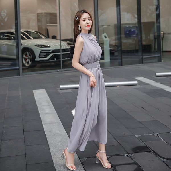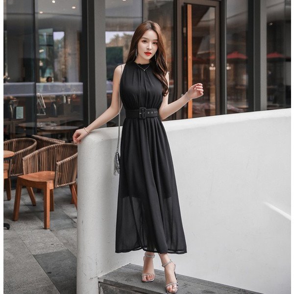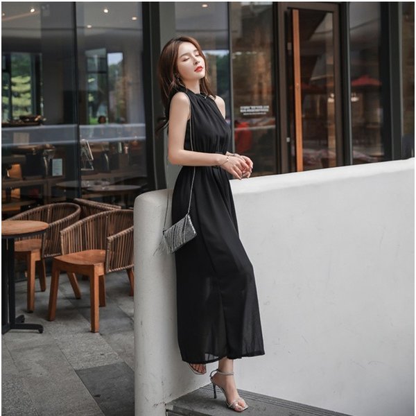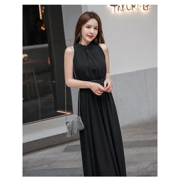 ワンピース レディース ノースリーブ リゾートワンピース 袖なし 大きいサイズ マキシワンピ 無地 ビーチ 海 シフォンワン
