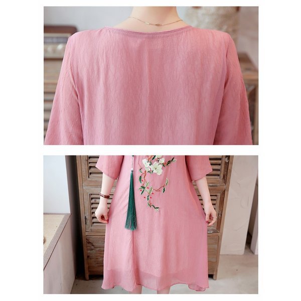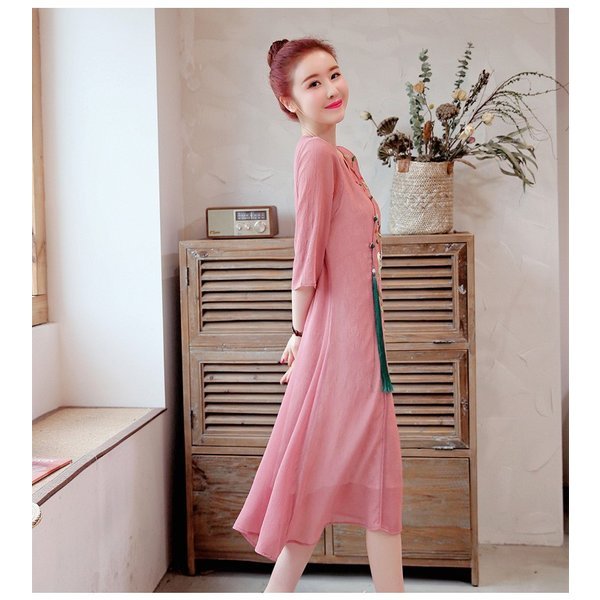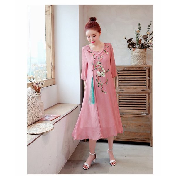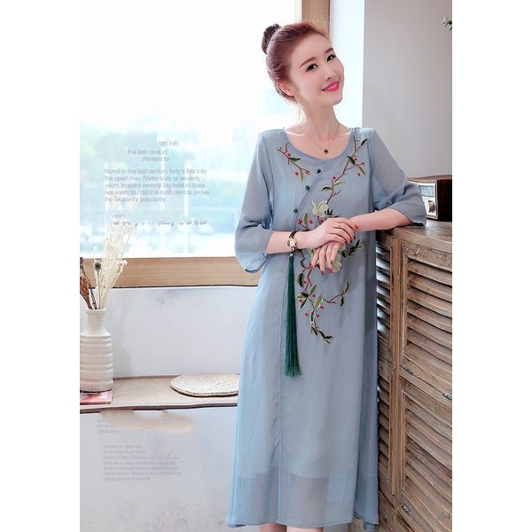 ワンピース レディース きれいめ マキシ 夏 七分袖 民族風ワンピース Aラインワンピ ロング丈ワンピース 着痩せ オシャレ