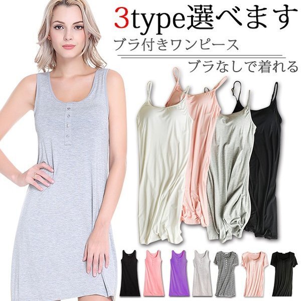 スリップ ワンピース カップ付き CL キャミソール ペチコート インナー ブラ付き ロング レディース ルームウェア 半袖 部屋着