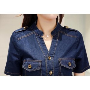 レディース デニムワンピース デニムワンピ ロング 半袖 ミディアム丈 膝丈 ひざ丈 夏ワンピ シャツワンピース OL 通勤 大