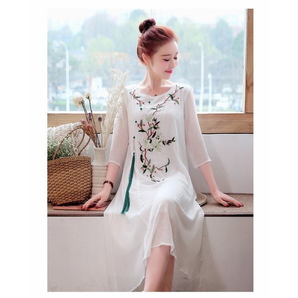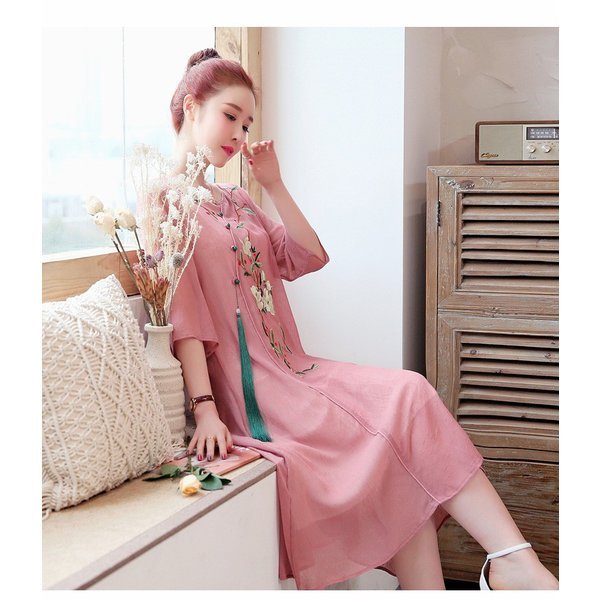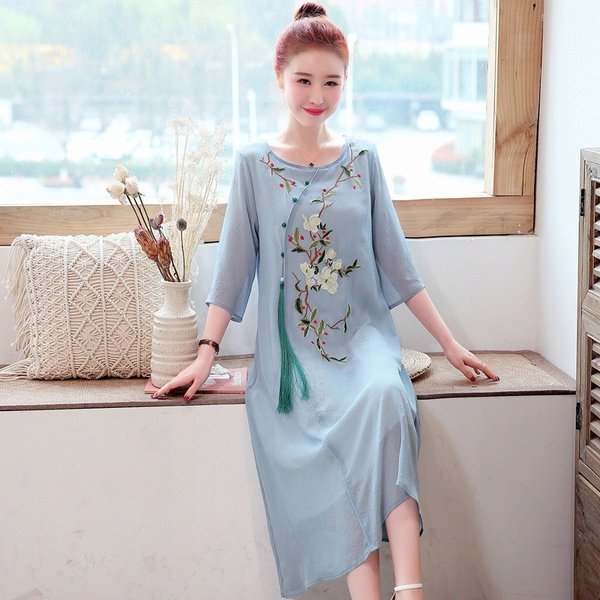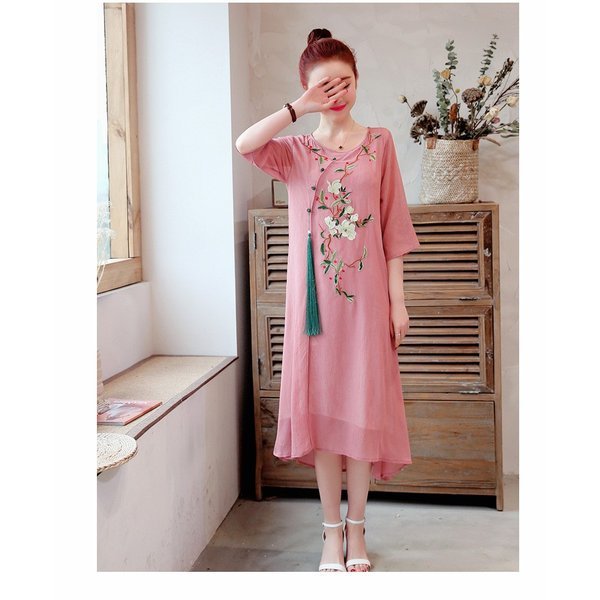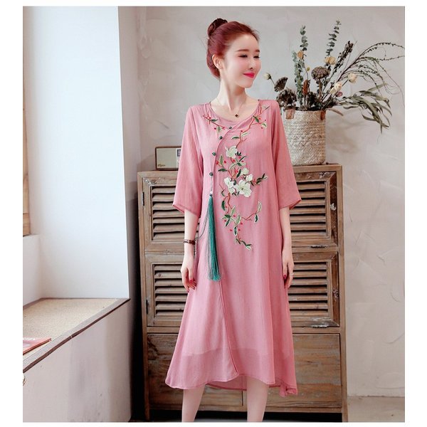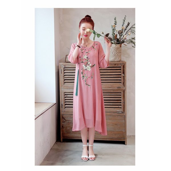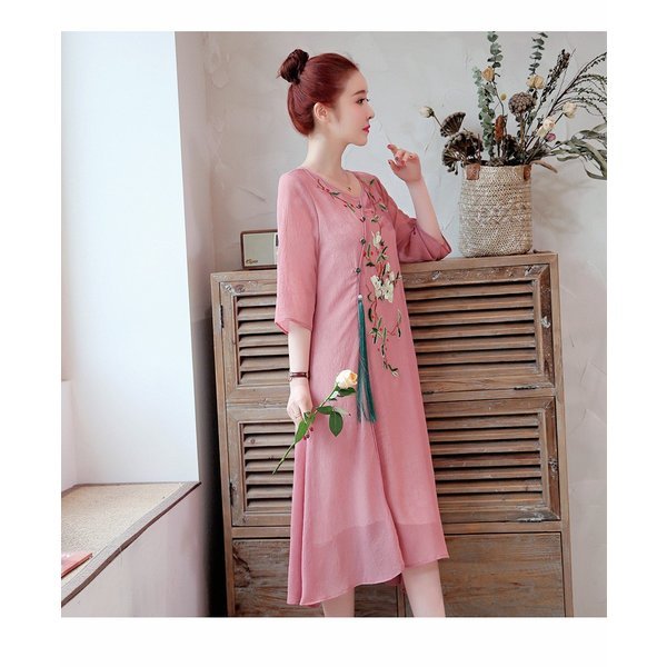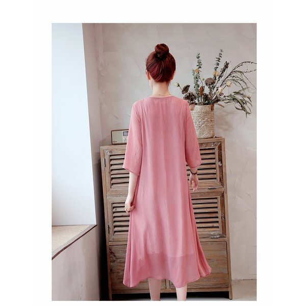 ワンピース レディース きれいめ マキシ 夏 七分袖 民族風ワンピース Aラインワンピ ロング丈ワンピース 着痩せ オシャレ