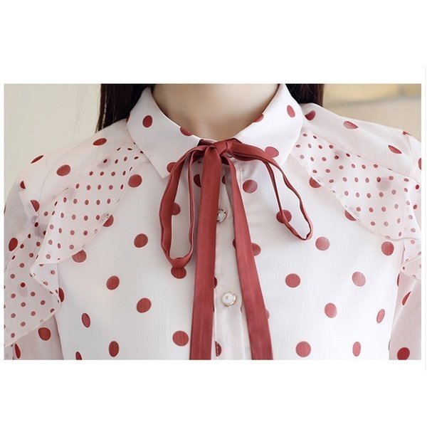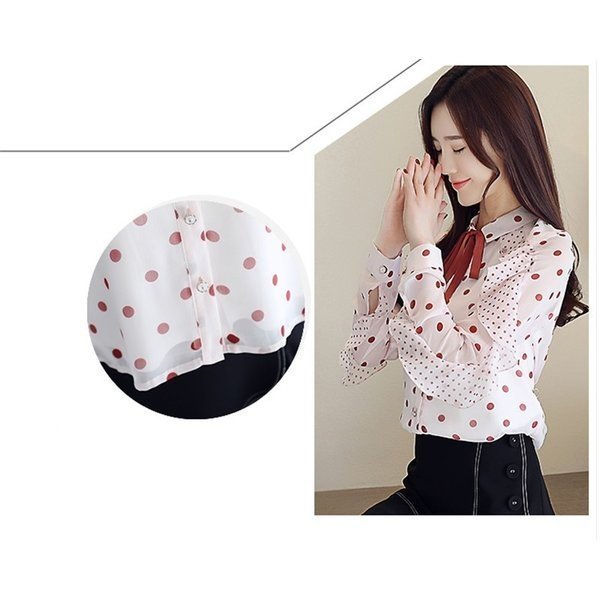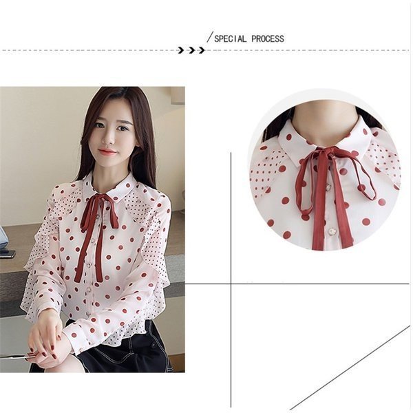 シャツブラウス シフォンシャツ ドット柄 水玉 長袖 韓国風 レディースシャツ 春夏 ファッション ブラウス ト