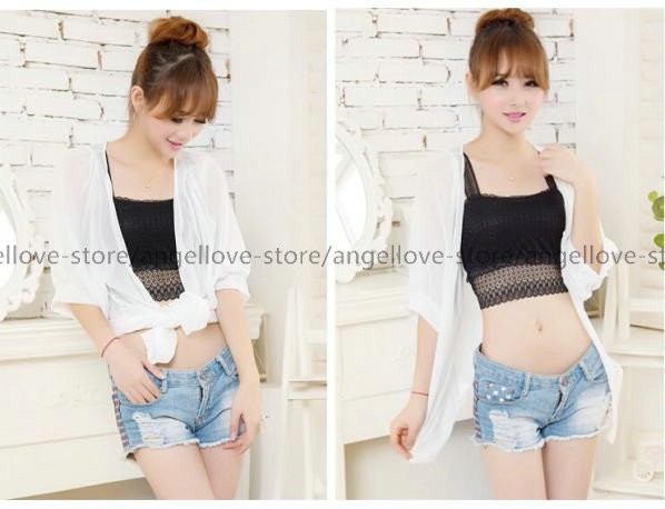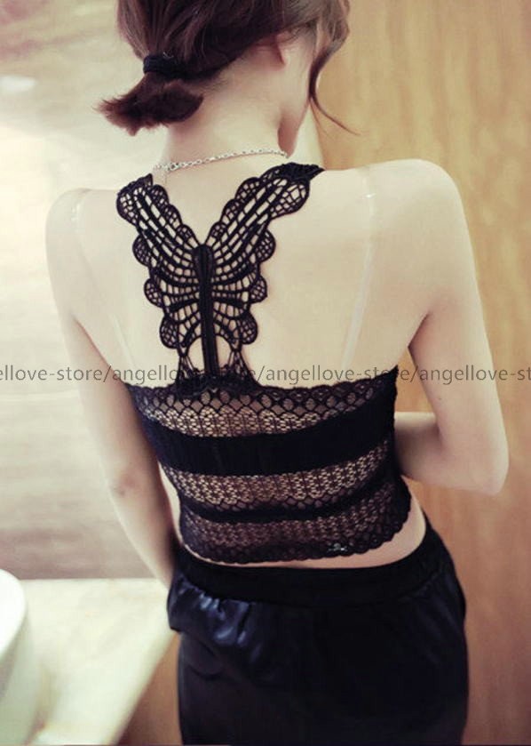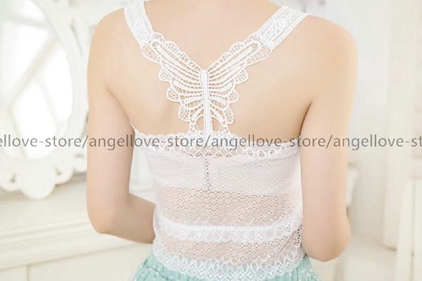 新品 夏 トップス ショート丈 キャミ 総レース キャミ へそ出し 蝶 キャミソール ミニ丈