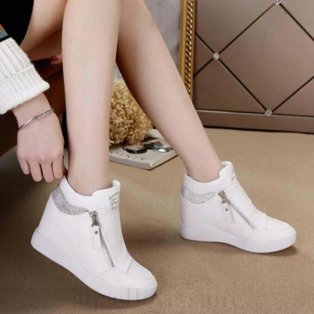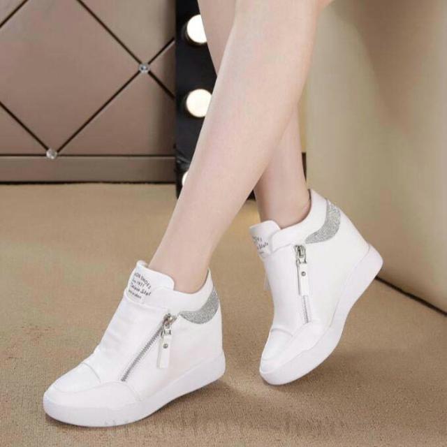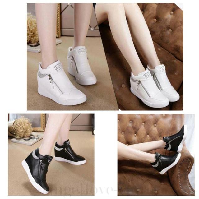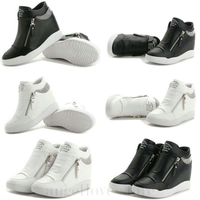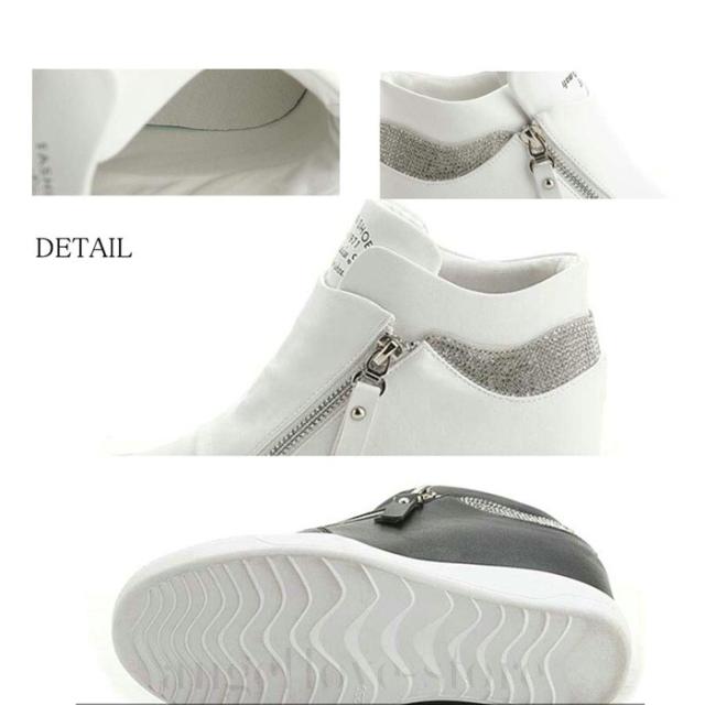 インヒールスニーカー スニーカー レディース ハイカット( 白 黒 )厚底 ハイカットインヒールスニーカー ジップ スニーカー ハイカット スリッポン