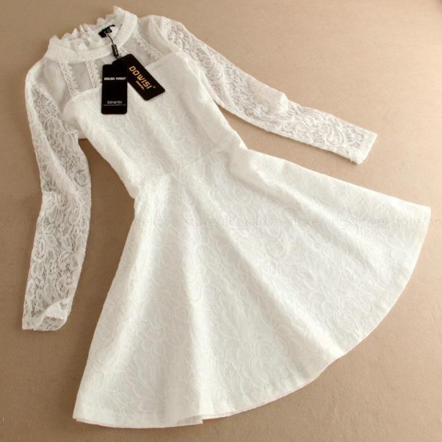 ワンピース 膝丈 結婚式 白 黒 レディース ワンピースドレス ミニ丈 長袖レースワンピース 秋着 ひざ丈ワンピ ショット丈 女性 大人 オシャレ