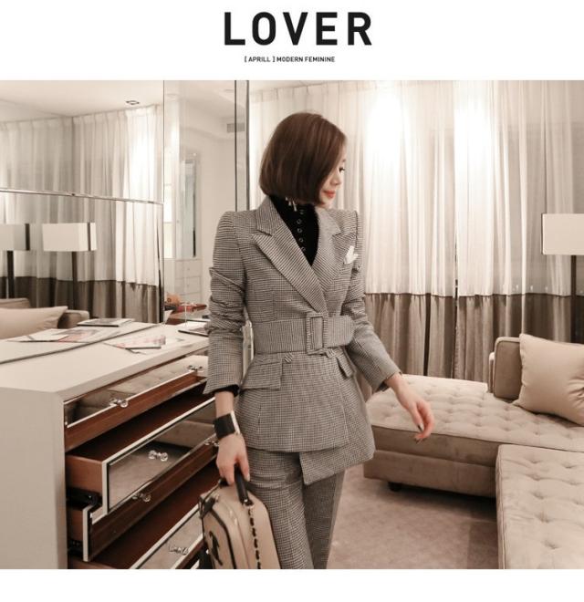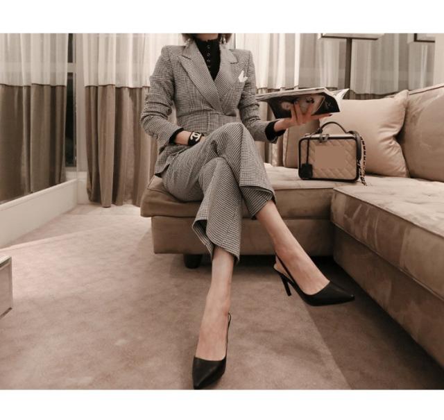レディース スーツセット パンツセット チェック柄 20代30代40代 事務服 フォーマル 細身シルエット 制服OL ビジネス 入学式 卒業式 通勤