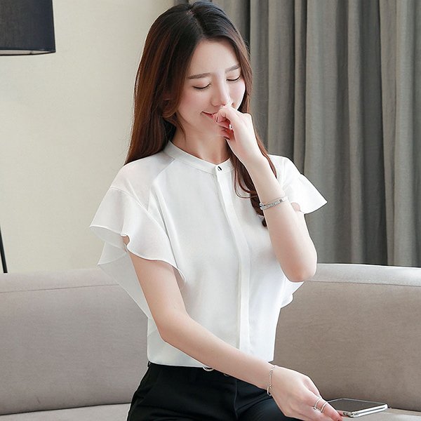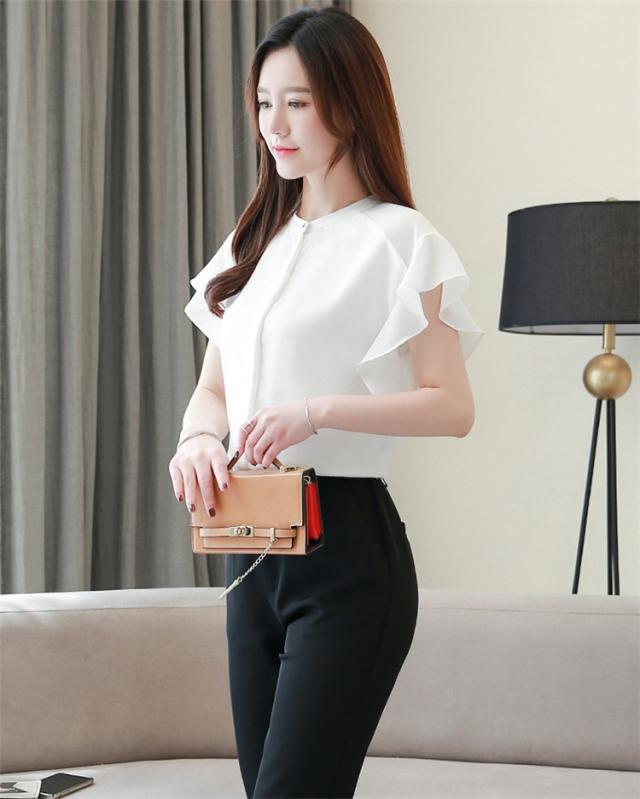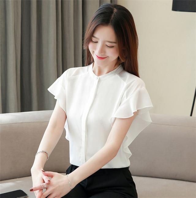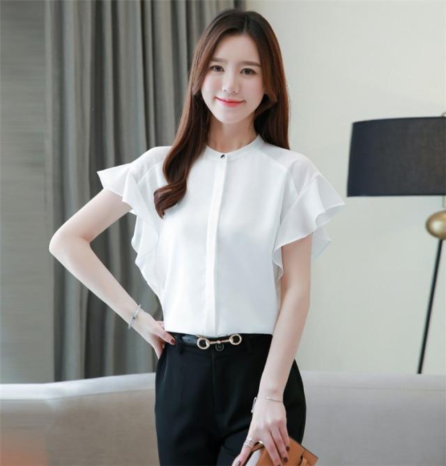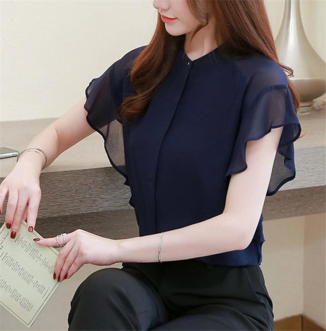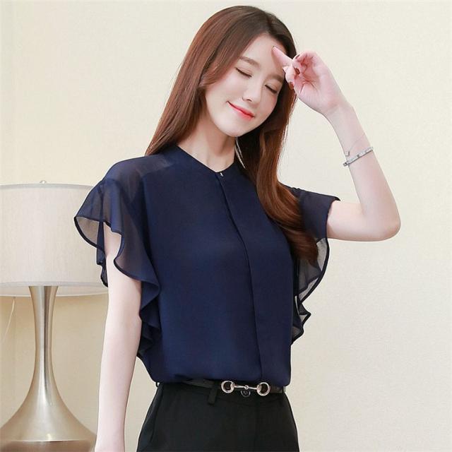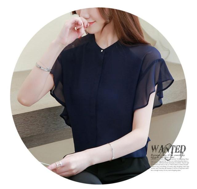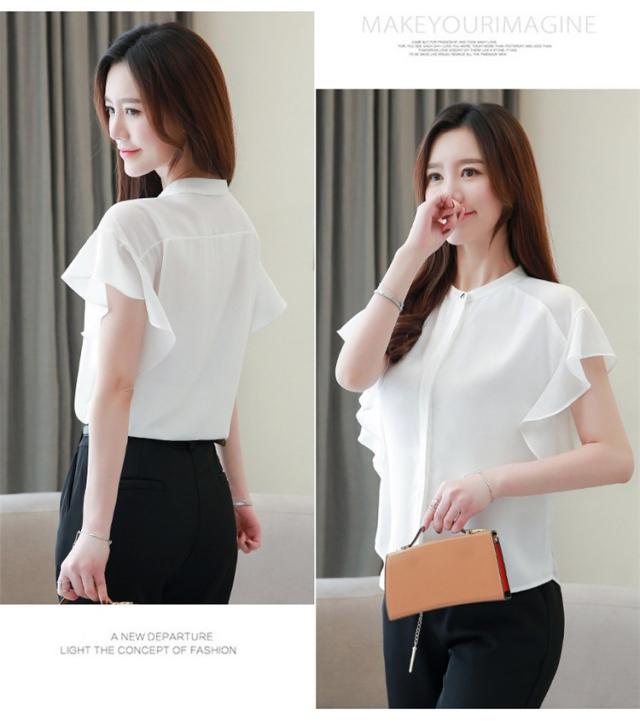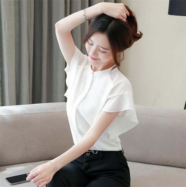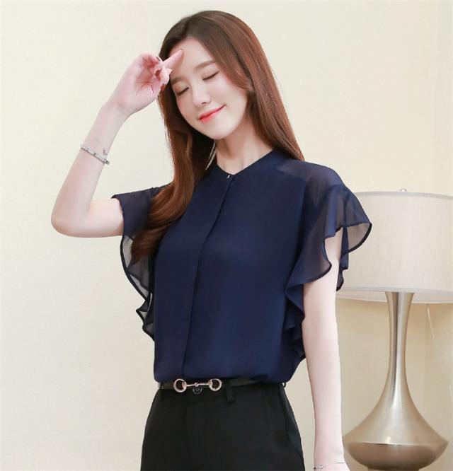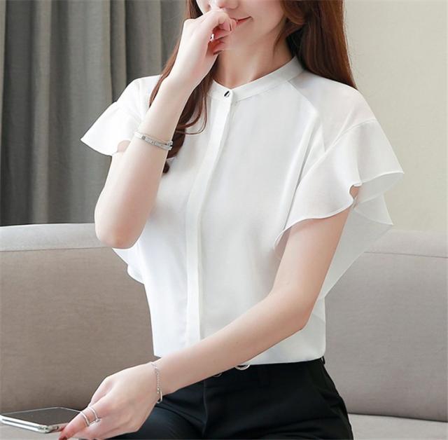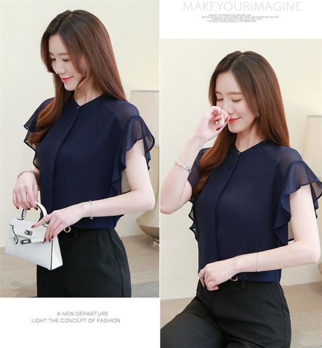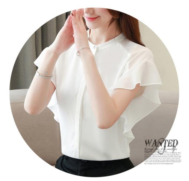 ブラウス レディース 半袖 40代 20代 オフィス 夏 おしゃれ 韓国風 トップス シャツ シフォン フリル きれいめ 大きいサイズ カジュアル 大人 通勤 上品 着痩せ
