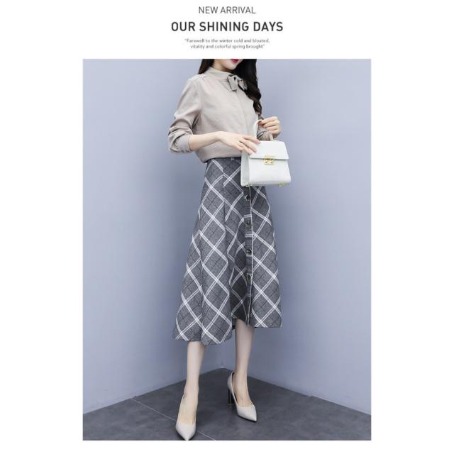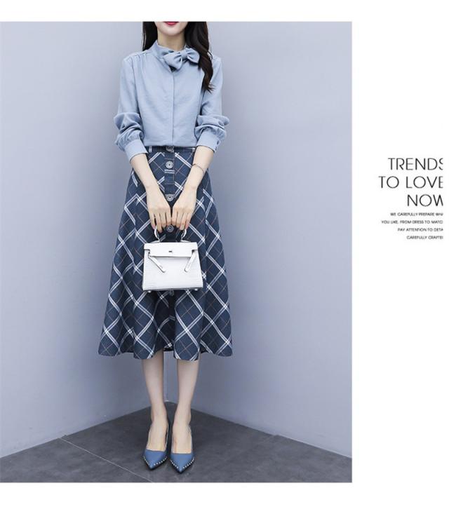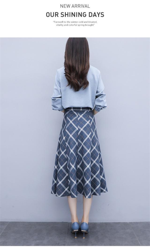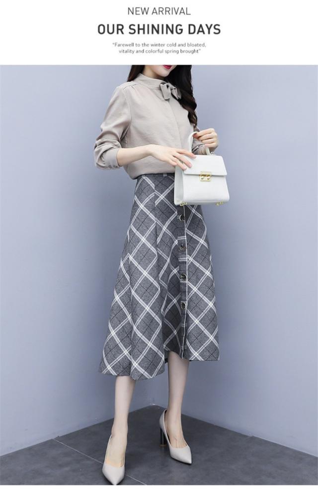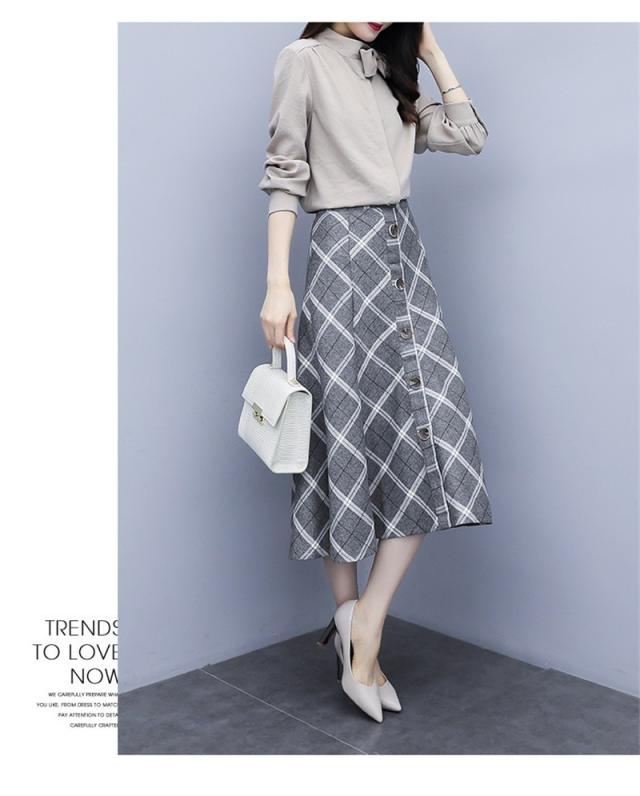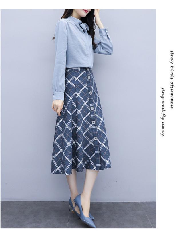 セットアップ 2点セット レディース 秋 トップス 長袖 シャツ スカート チェック柄 フォーマル aライン OL お呼ばれ 結婚式 入学式 50代