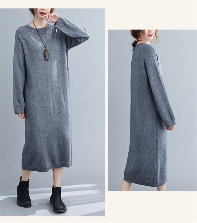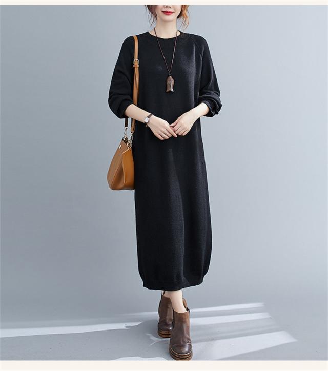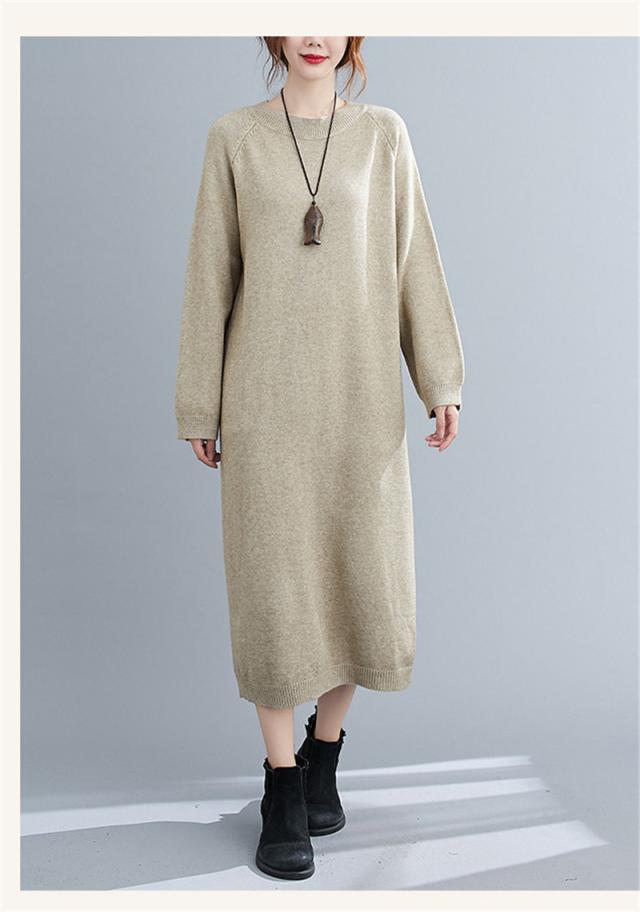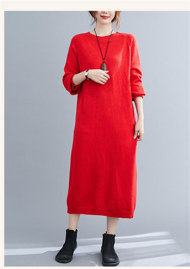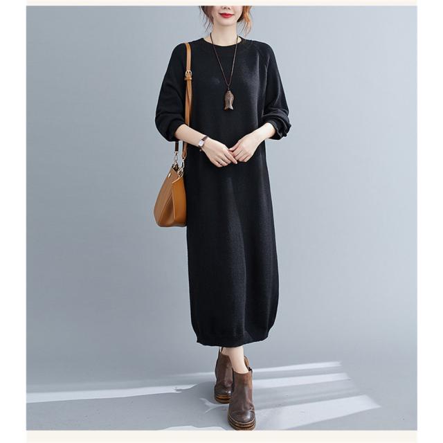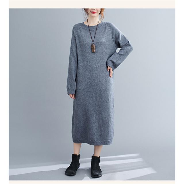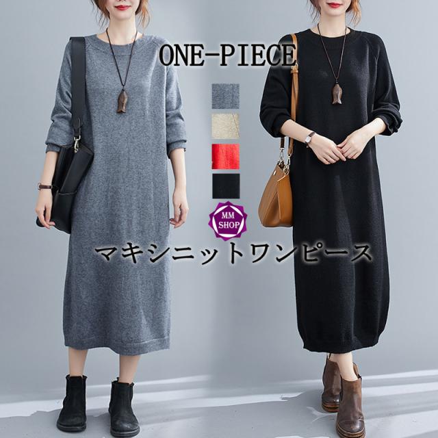 ワンピース チュニック レディース マキシ ロングワンピース 秋冬 ニットワンピース ニットセーター 秋 体型カバー 着痩せ 部屋着 アウター ゆったり 新品