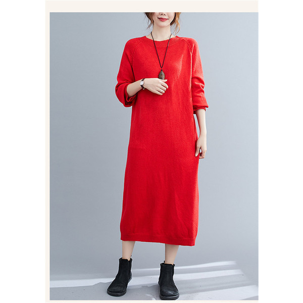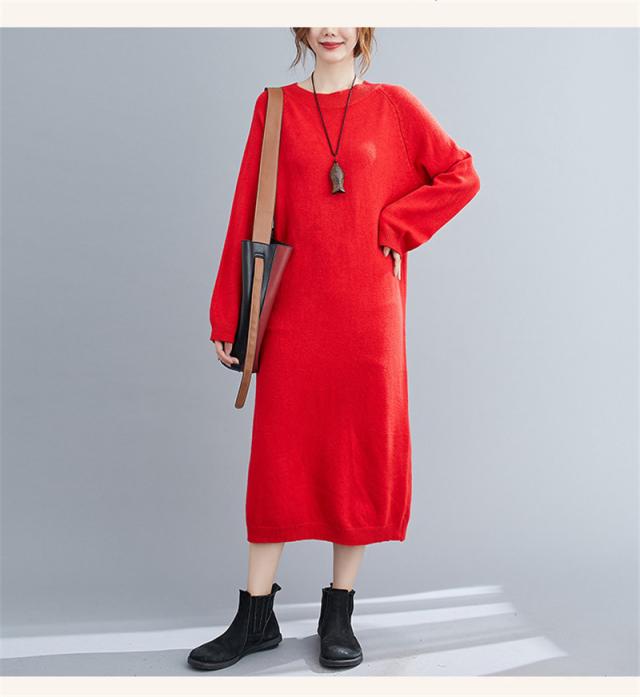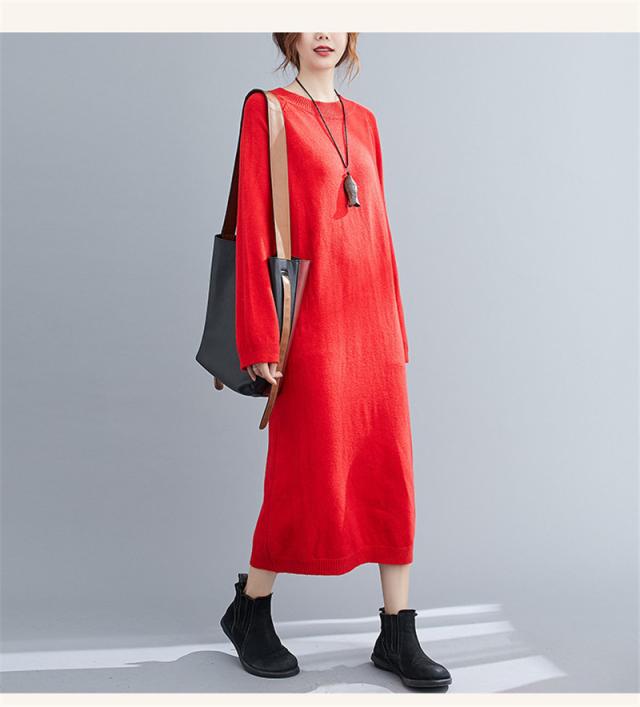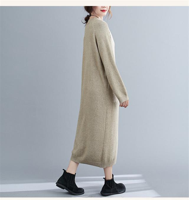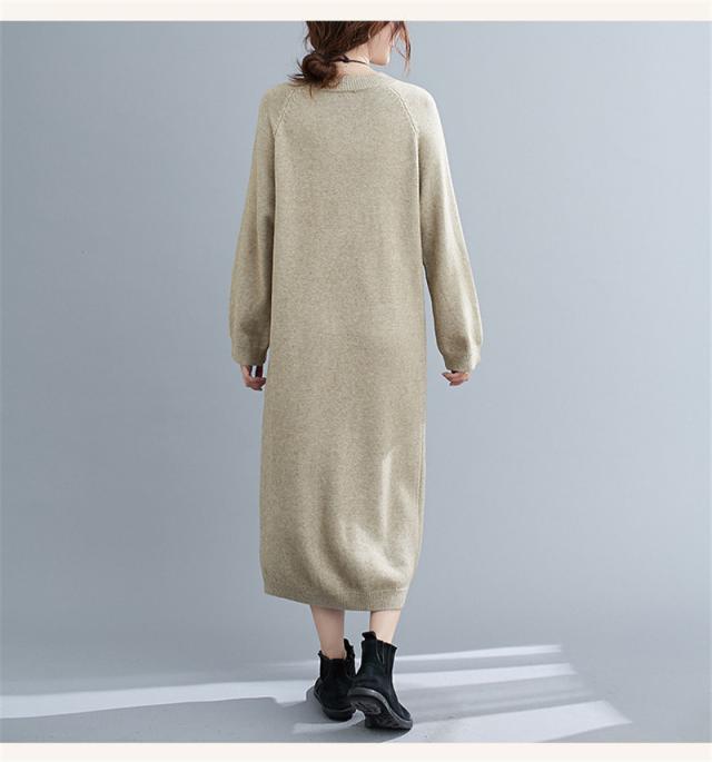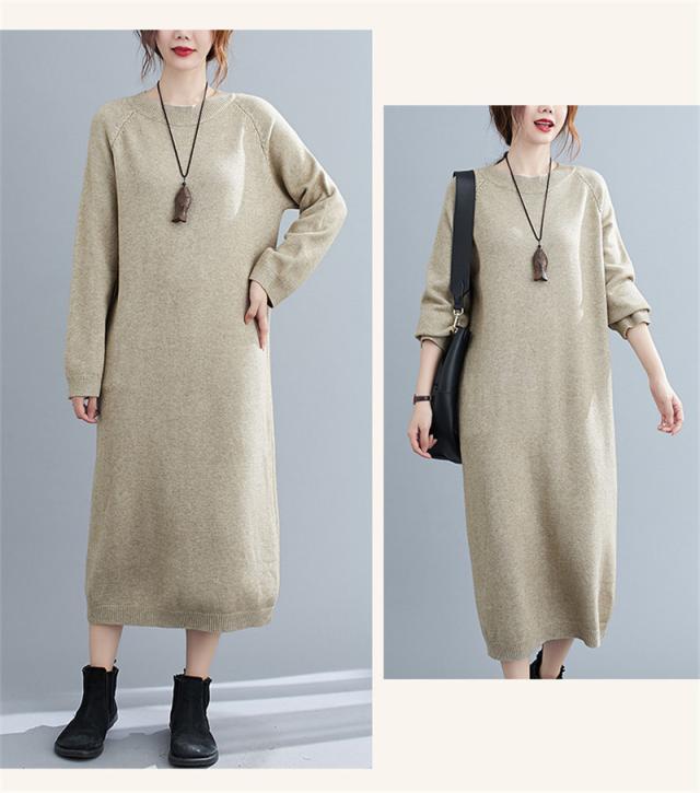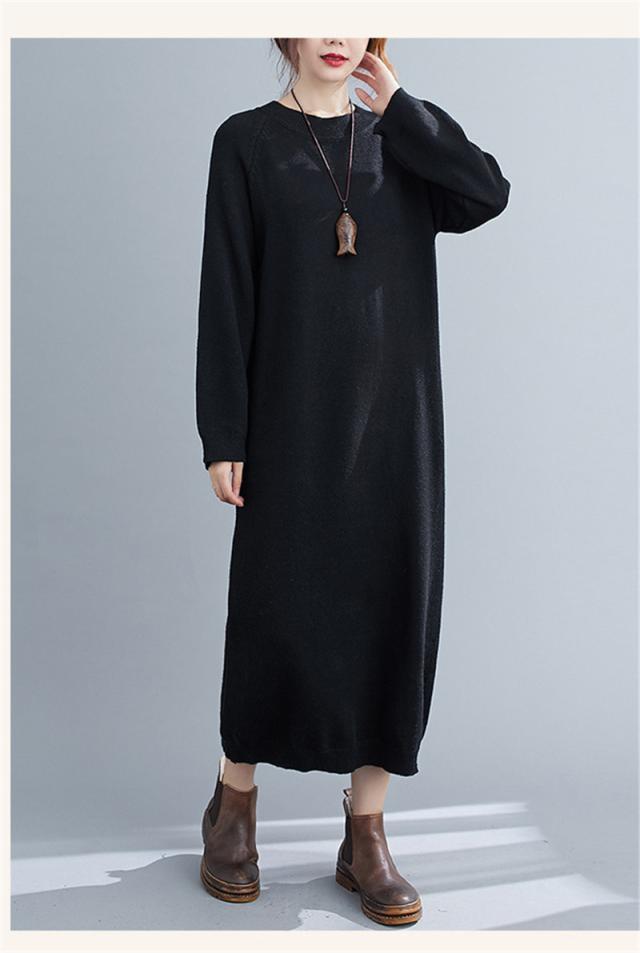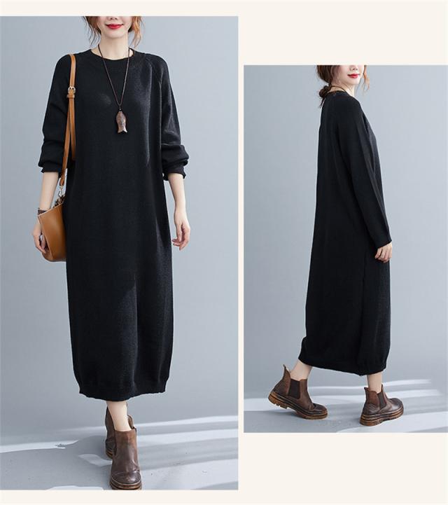 ワンピース チュニック レディース マキシ ロングワンピース 秋冬 ニットワンピース ニットセーター 秋 体型カバー 着痩せ 部屋着 アウター ゆったり 新品