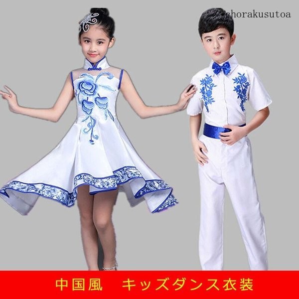 キッズダンス衣装 女の子 ワンピース チャイナドレス 男の子 スーツセット 社交ダンス 刺繍入り ダンスウェア ステージ服 演出服 発表会