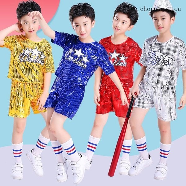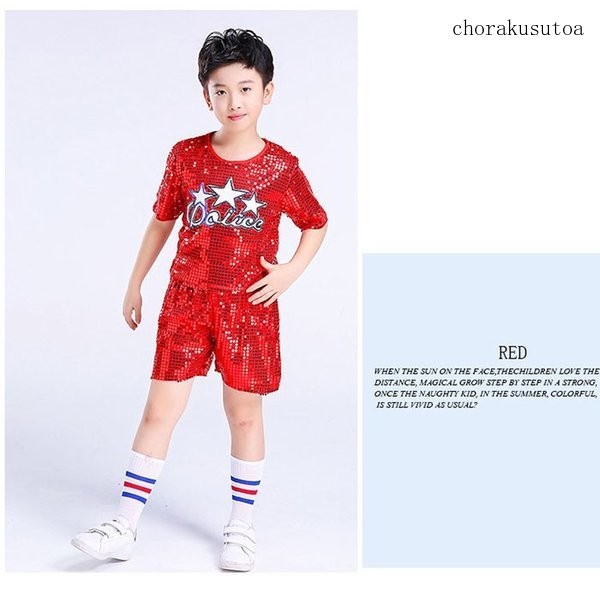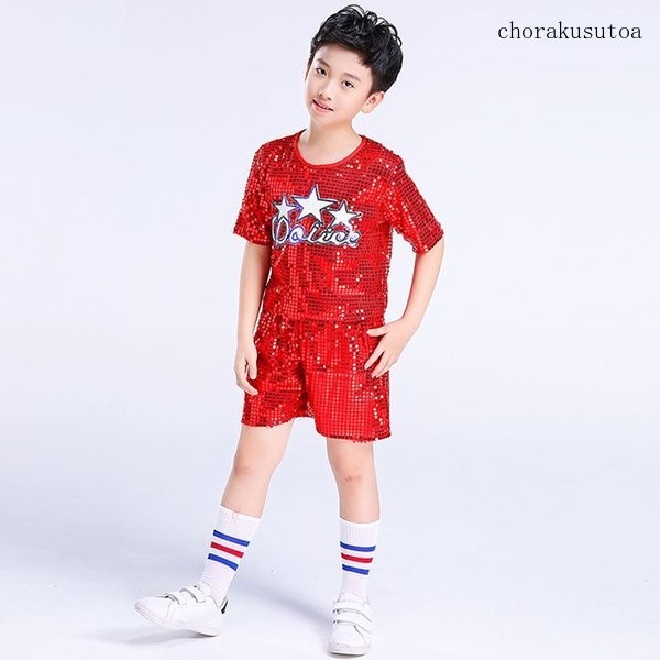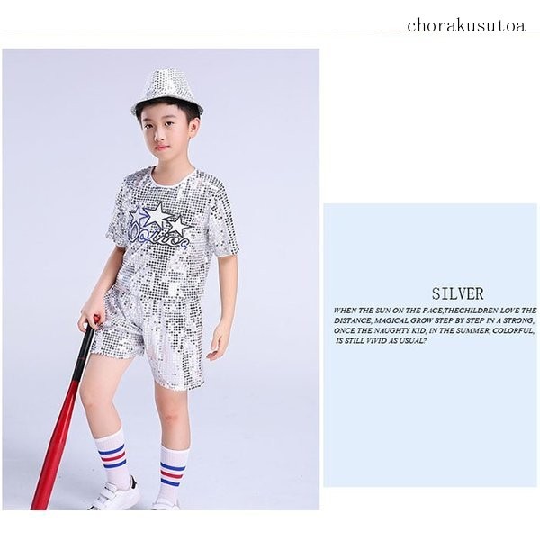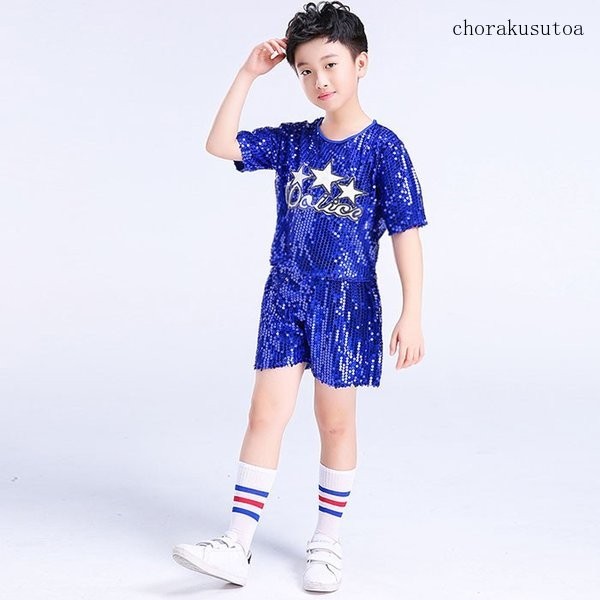 キッズダンス衣装 セットアップ 半袖 ショートパンツ スパンコール 女の子 男の子 ジャズダンス ヒップホップ ダンスウェア 演出服