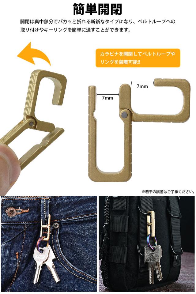 カラビナ キーホルダー 真鍮製 簡単開閉 軽量 小型 持ち運び アウトドア カギ 鍵 コンパクト レジャー