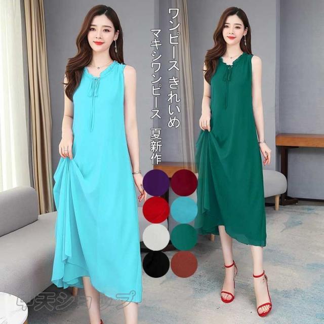 キャミワンピース レディース シフォンワンピース 夏 きれいめ 無地 フリル リボン ゆったり 体型カバー 大きいサイズ チュニック お出かけ 通勤 着痩せ 8色