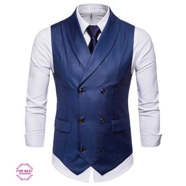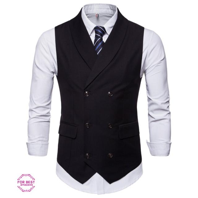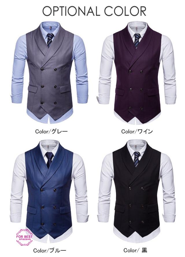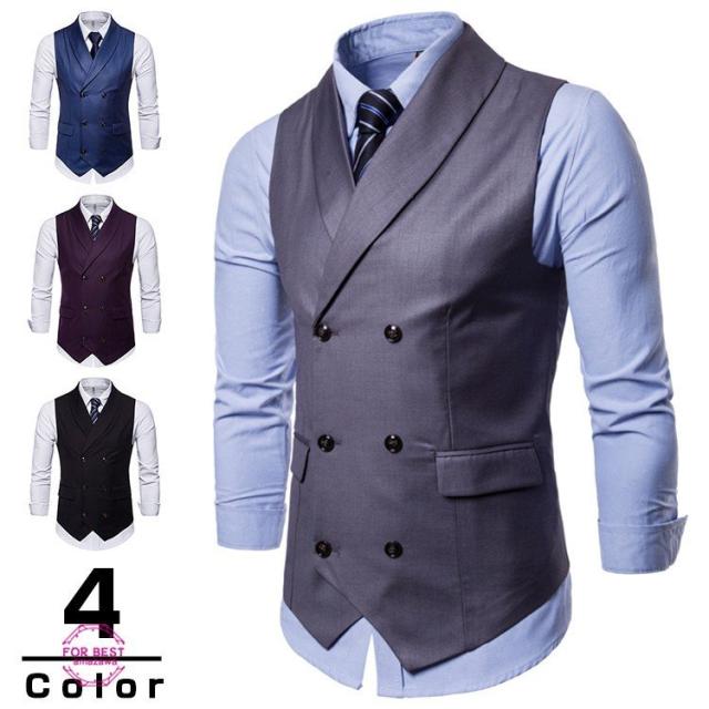 フォーマルベスト メンズ ジレベスト ベスト スーツベスト ビジネス 無地 ダブルボタン 折り襟 紳士服 結婚式 パーティー 夏