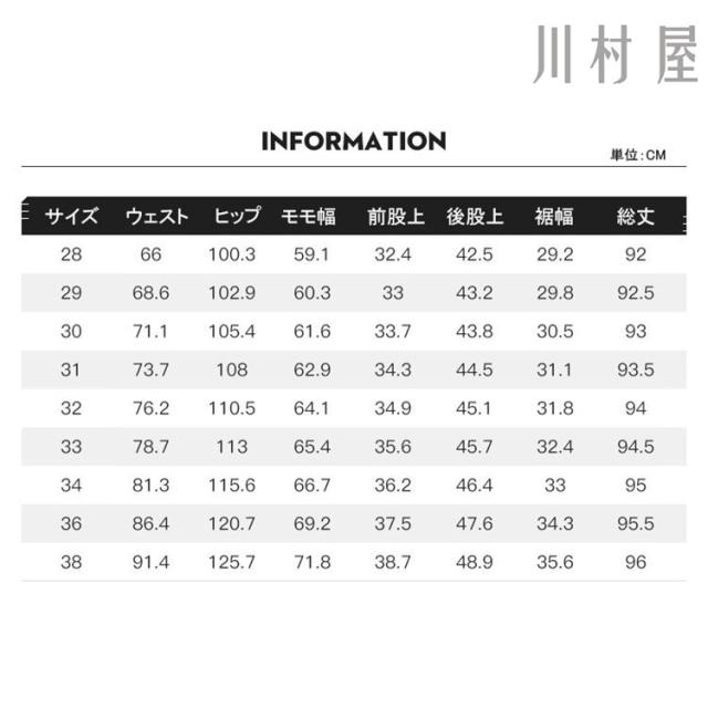 | サイズ | 28 29 30 31 32 33 34 36 38 |