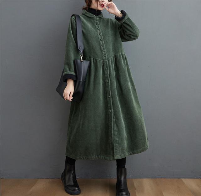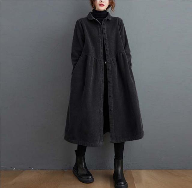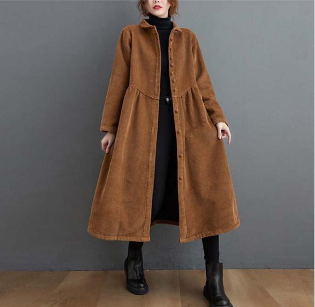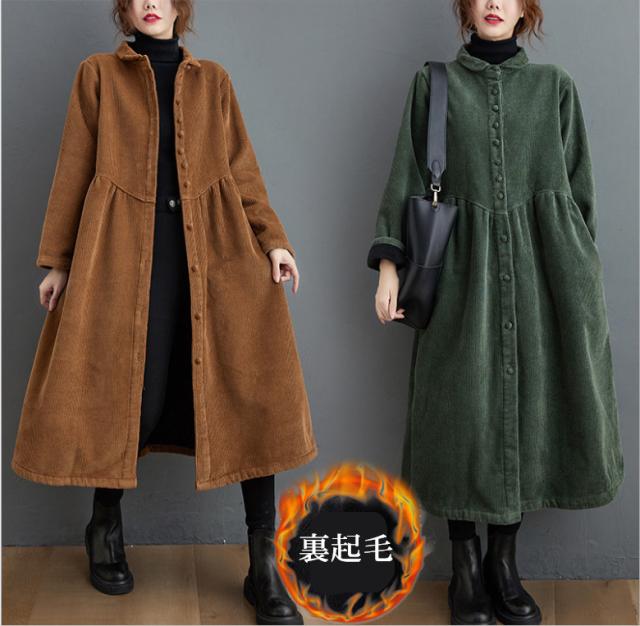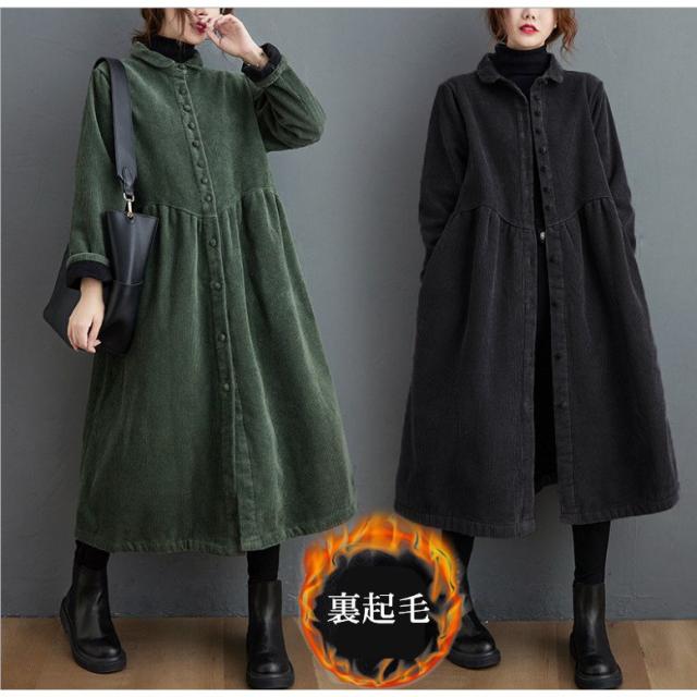 コーデュロイコート 2way ロング丈 ロングワンピース レディース ジャケット アウター 長袖 ロングコート フレア コーデュロイ 防寒 厚手 大きいサイズ