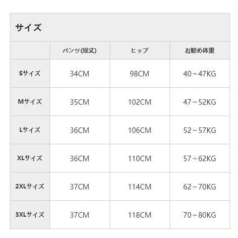 | サイズ | S M L XL XXL XXXL |