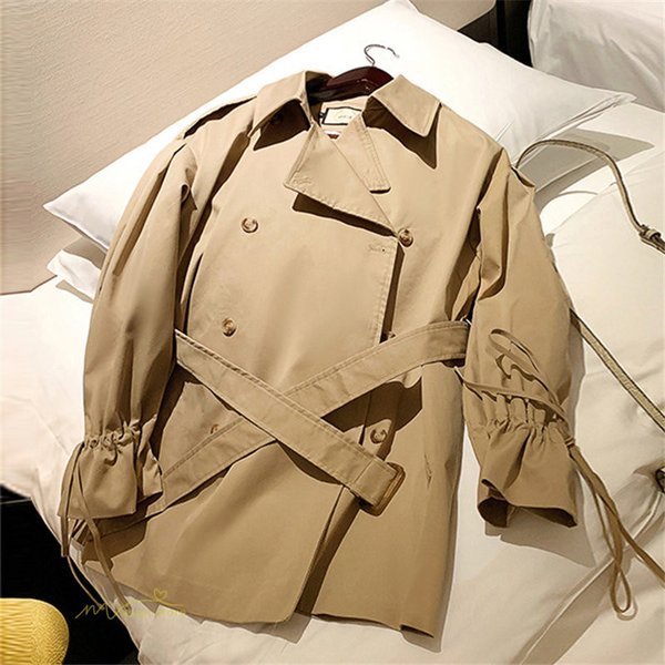 トレンチコート レディース スプリングコート アウター ベルスリーブ トップス ショート丈 ファッション ガーリー トレンド カジュアル ゆったり 格好いい