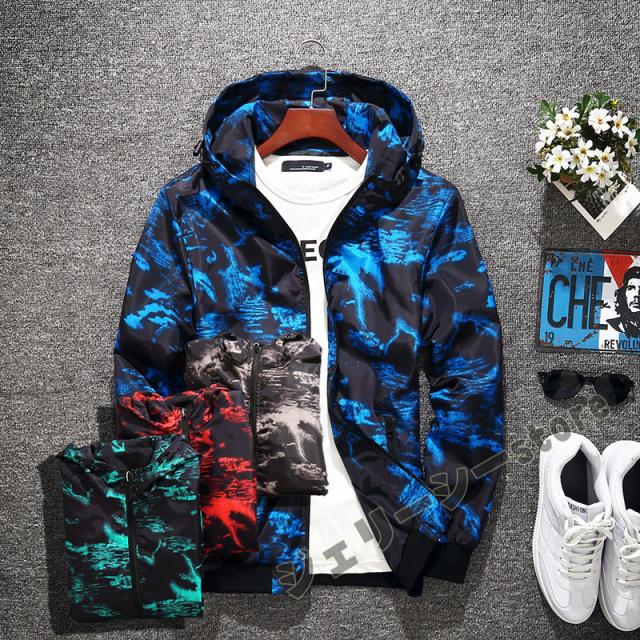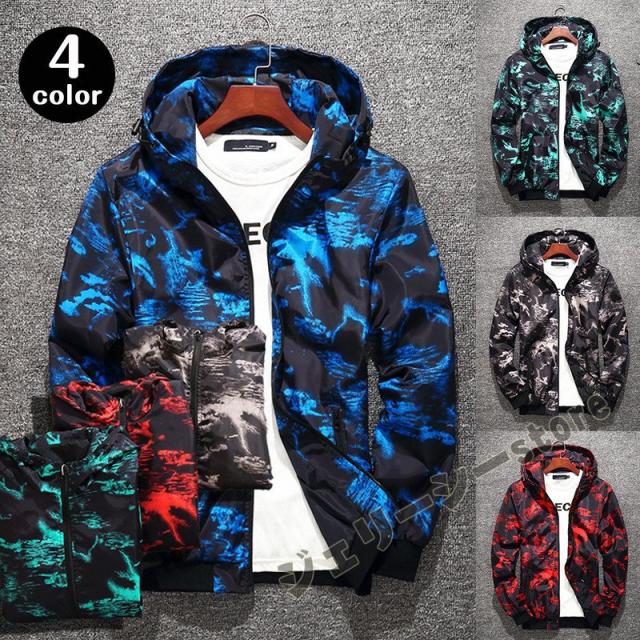 ウインドブレーカー メンズ マウンテンパーカー 迷彩柄 アウター 春秋 薄手 防風 長袖パーカー 大きいサイズ ジップパーカー フード付き カジュアル おしゃれ