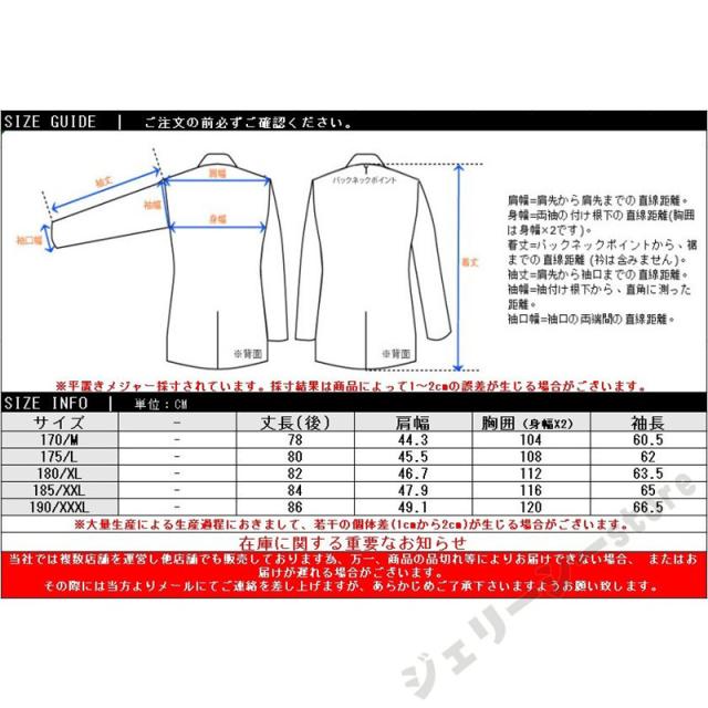 | サイズ | M/170 L/175 XL/180 XXL/185 XXXL/190 |